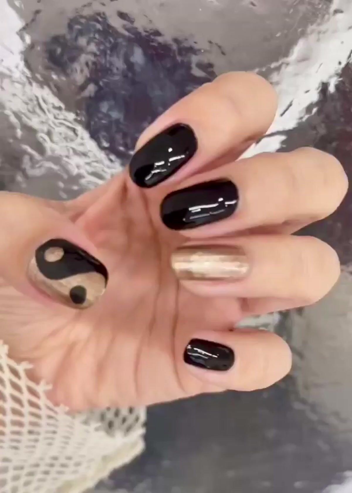 セルフネイルデザイン:ラメカラーで叶えるモードな陰陽ネイル