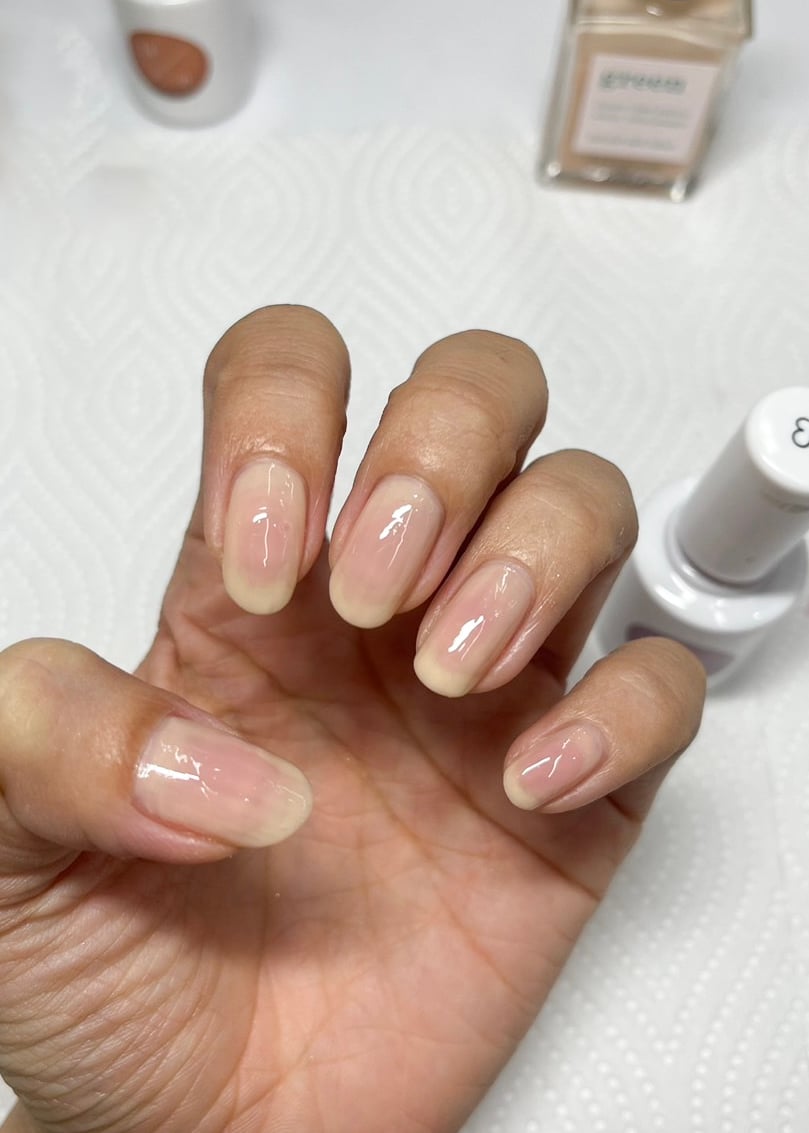 ①ベースカラーとして「マニキュリスト(manucurist)」のベージュを塗ります。
