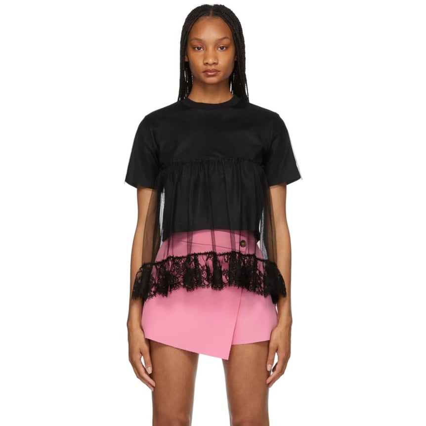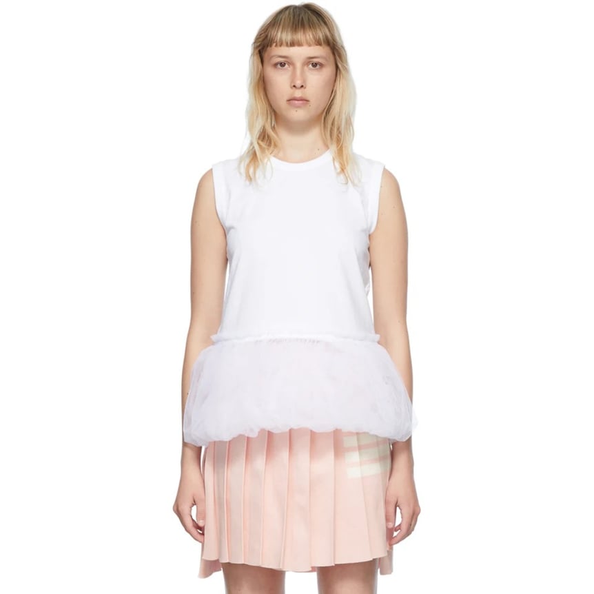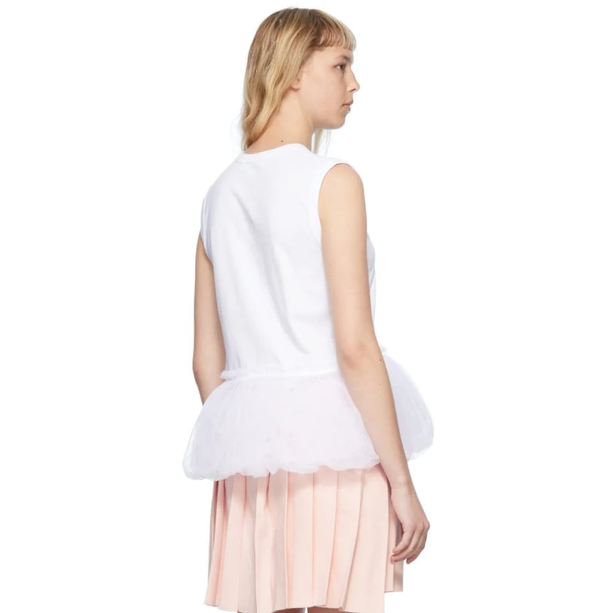 シアーアイテムが豊富な今季の「コム デ ギャルソン ガール(COMME des GARÇONS GIRL)」からは、ペプラムトップスをピックアップ。シンプルなアイテムながら、浮遊感漂うチュールがコーディネートのアクセントに。