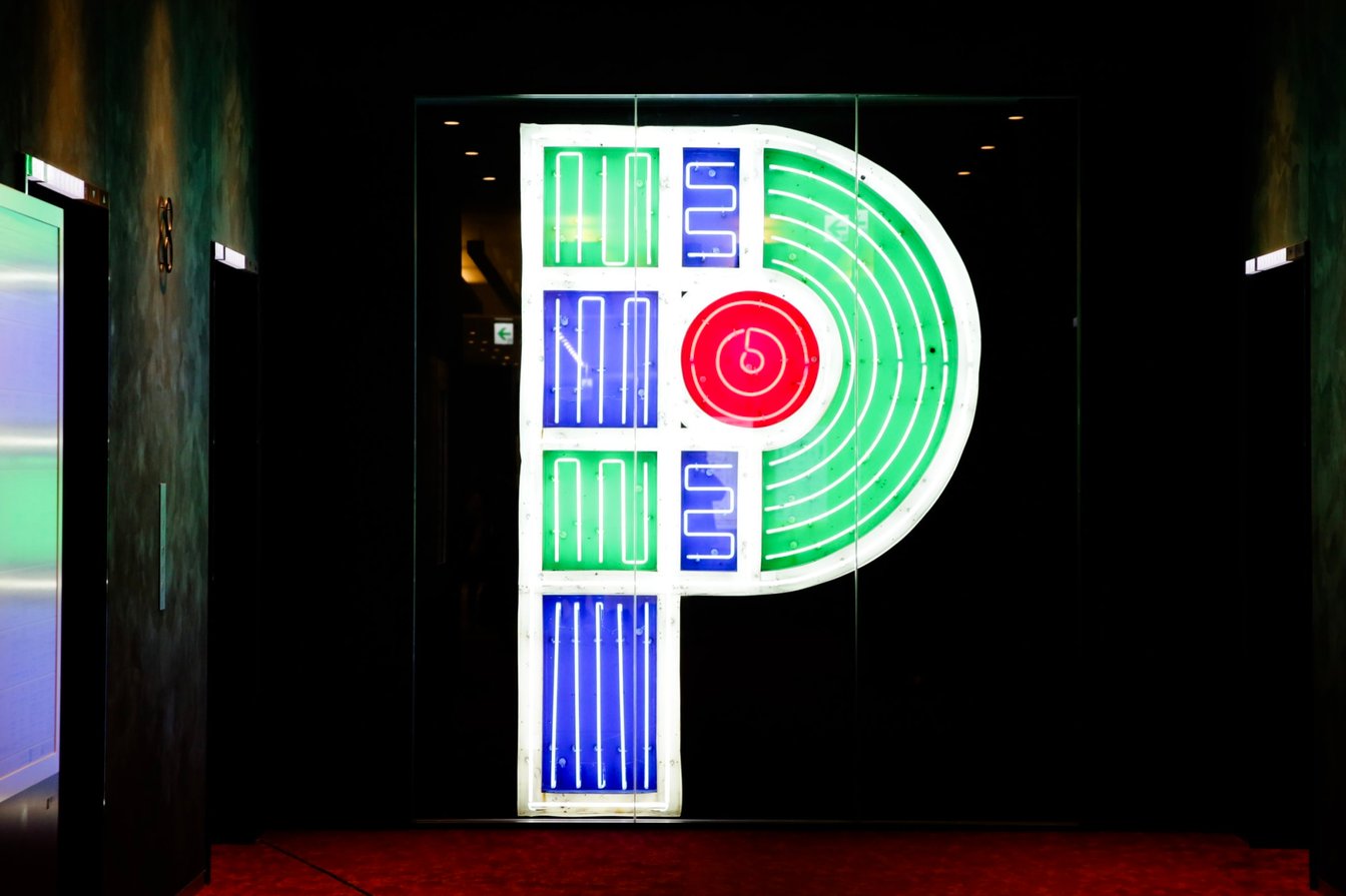 渋谷パルコに展示されているネオンサイン「P」。「R」「C」も同様に展示されているが「A」と「O」は渋谷には設置されていない。