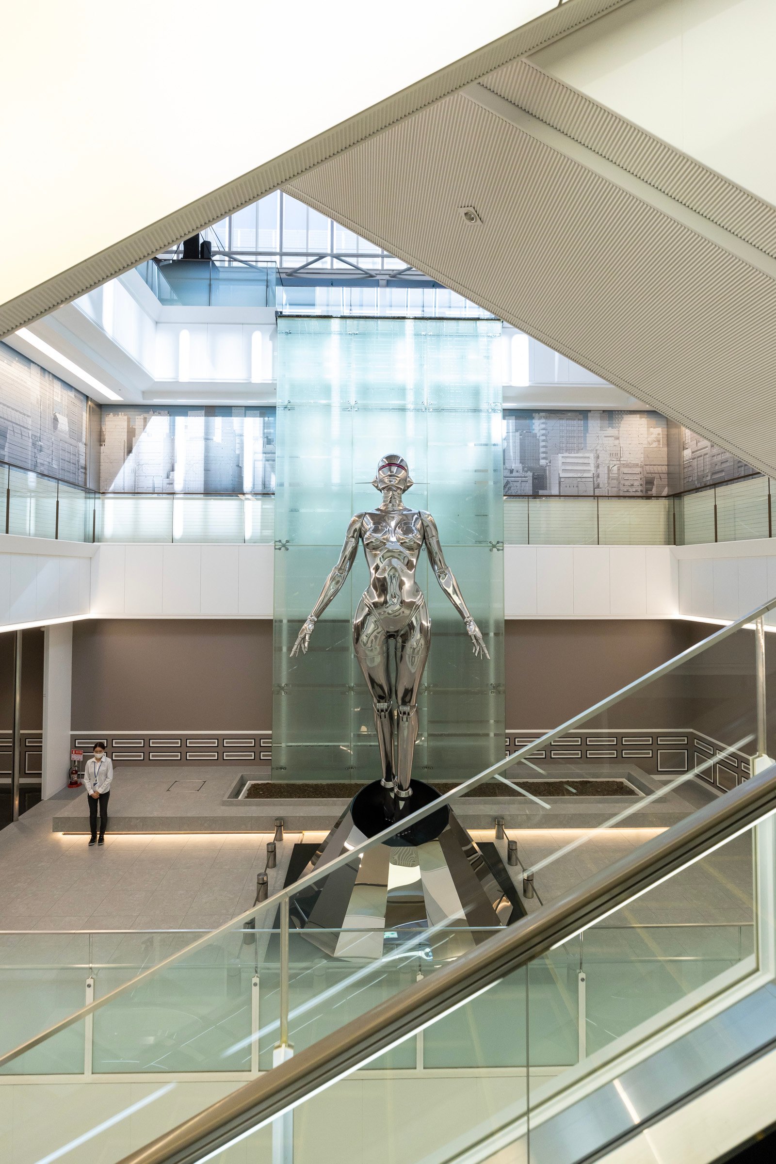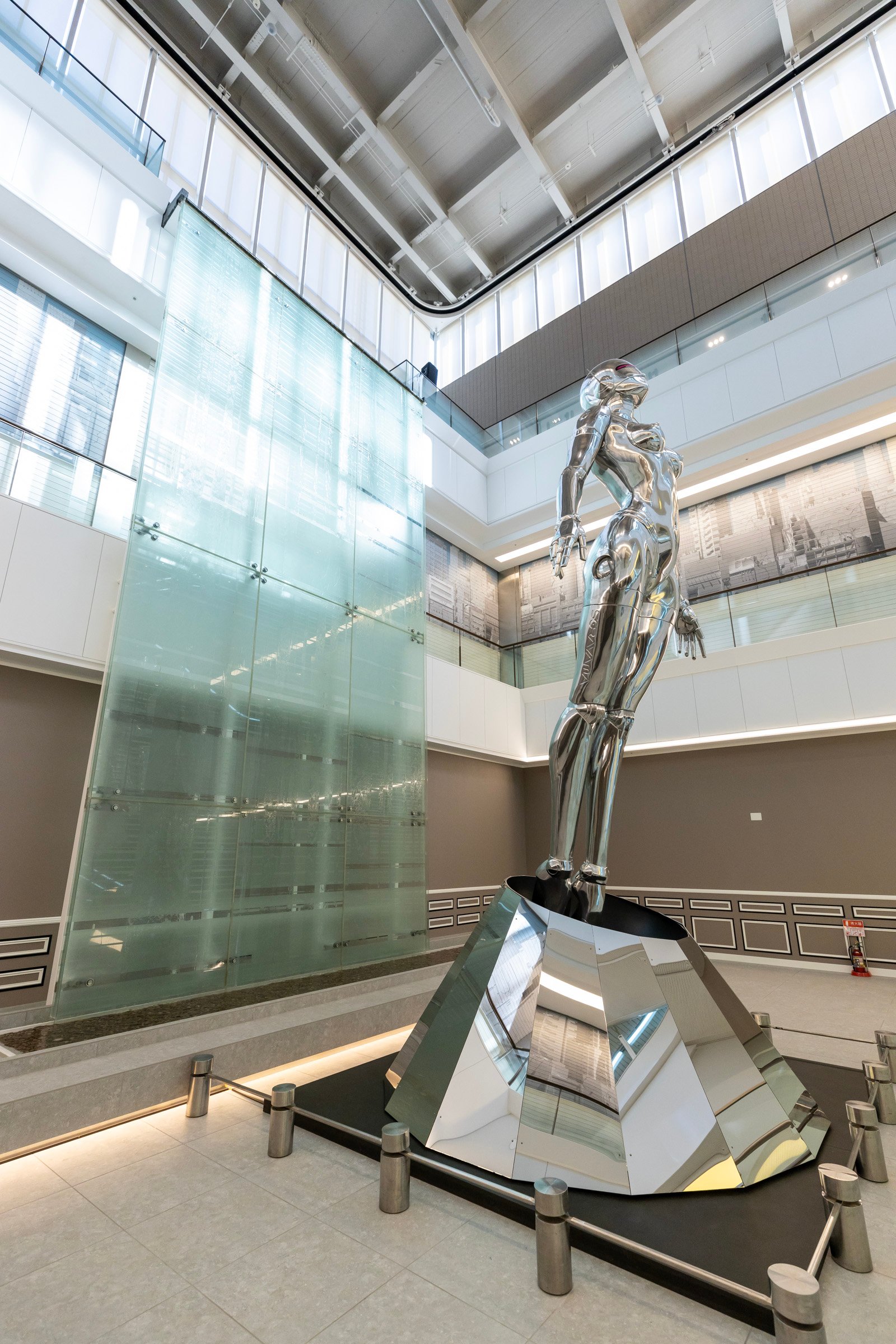 12階のシアターは2021年初春にオープン予定。14階までの吹き抜けとなっている滝の広場には、全長約7mの空山基氏の作品「Sexy Robot」が1月中旬まで特別展示されます。