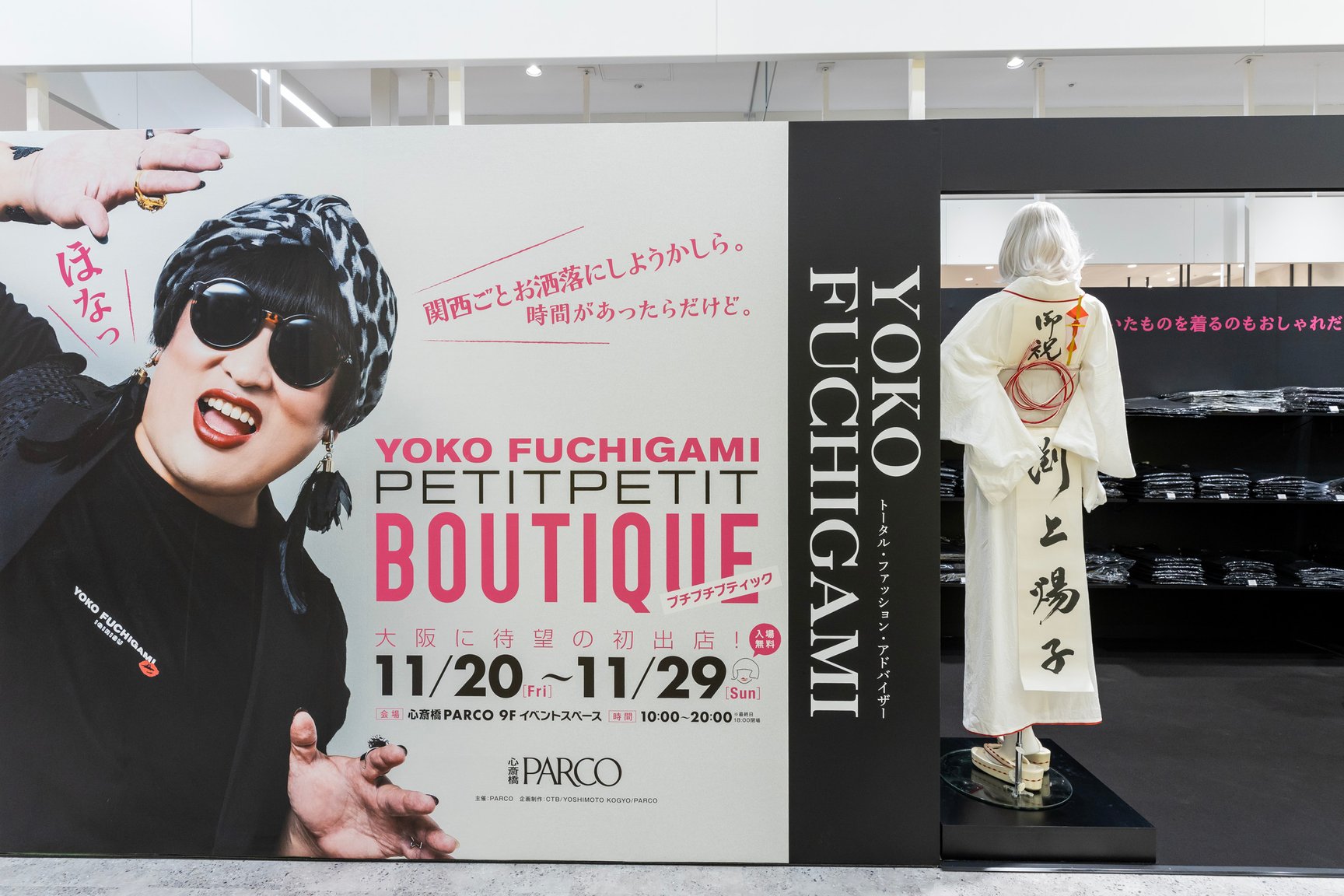 世界的ファッションデザイナーYOKO FUCHIGAMIによる「YOKO FUCHIGAMI プチプチブティック」が大阪に初出店。YOKO FUCHIGAMIの新ラインを先行発売するほか、YOKO FUCHIGAMIの衣装の展示、フォトスポットが登場します。期間は11月29日まで。