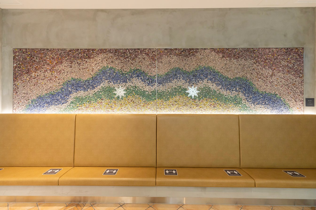 館内各所には、そごう時代から大丸時代へと受け継がれた芸術品をパブリックアートとして展示。13階では、そごう時代天井演出で使用されていた鶴丸梅吉によるモザイクタイル「天空」を観ることができます。