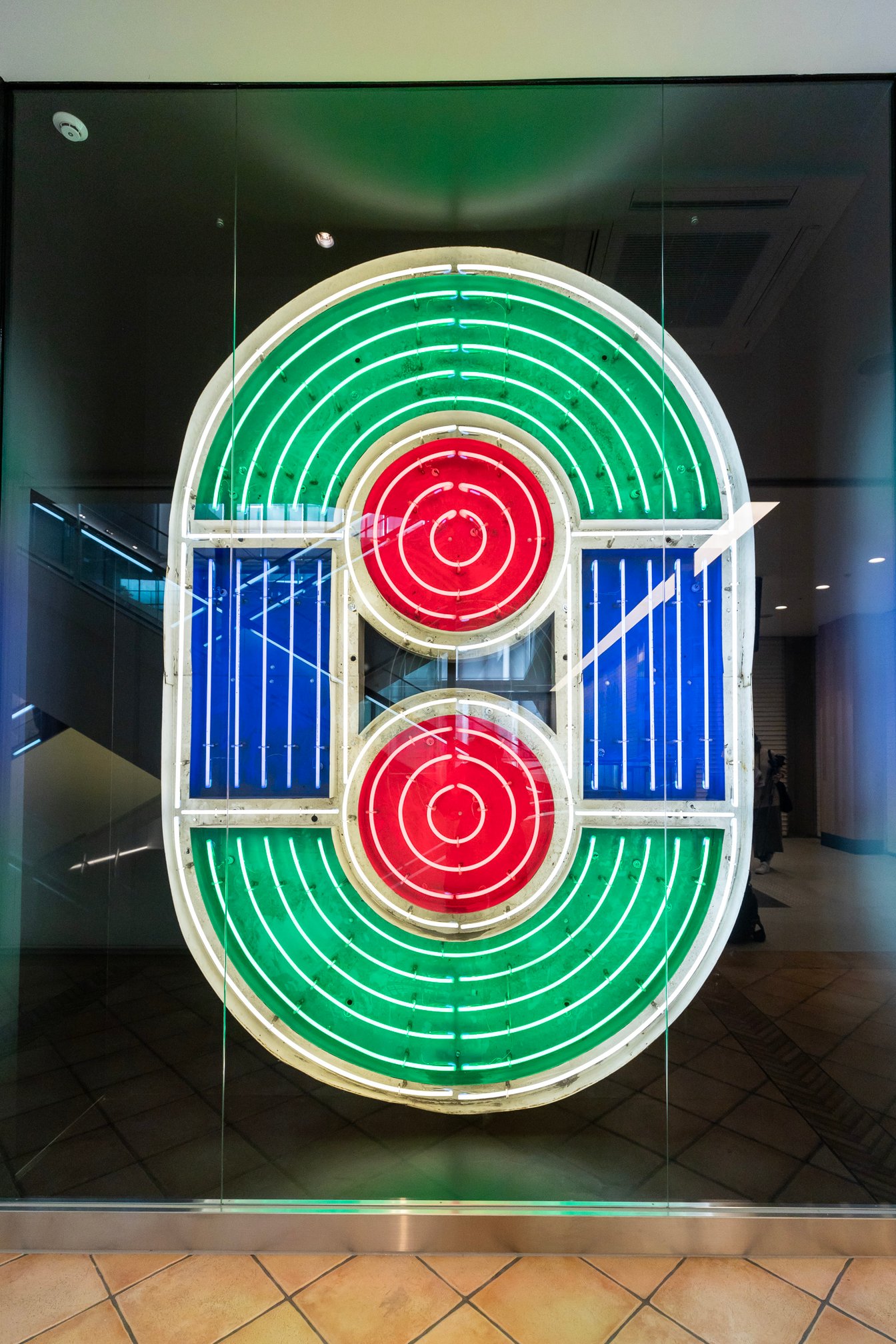 旧渋谷PARCO外壁に設置されていた五十嵐威暢デザインのネオンサイン。渋谷PARCOでは「P」「C」「R」の文字が館内のアート作品として展示されていますが、「O」の文字はここ13階で発見しました。最後の「A」は、2021年3月オープンの地下2階のレストランフロアに飾られる予定です。