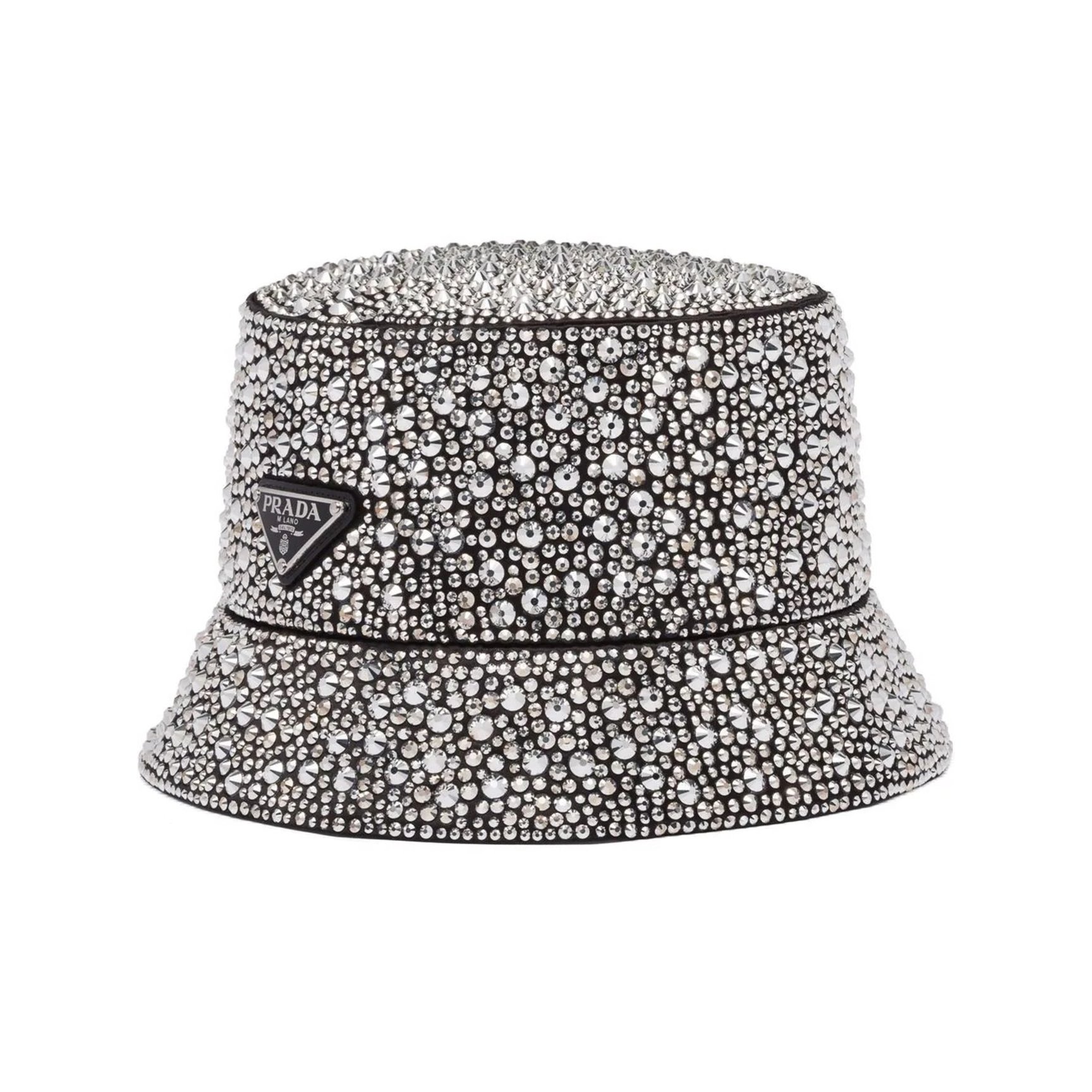 90'sリバイバルの今、バケットハットはマストハブ。であればこちらのゴージャスなアイテムはいかが?表面にびっしりと配されたビジューとフロント部分に輝く「プラダ(PRADA)」のロゴパッチが、いつものコーデをアイコニックなスタイルへと瞬時にチェンジ。