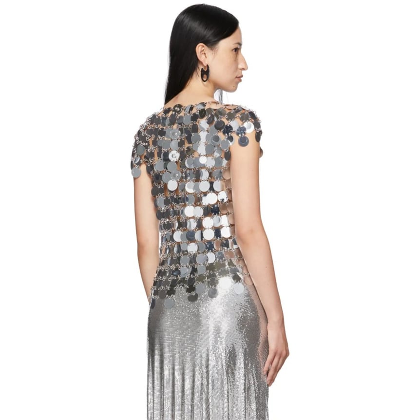 ディスクを重ねメタルディスクスタイルで仕上げた職人技の光るハンドメイドプロダクト。シャイニールックといえば最初に名前の上がる「パコ ラバンヌ(Paco Rabanne)」。今年一着は手に入れたいマストハブのアイテムです。