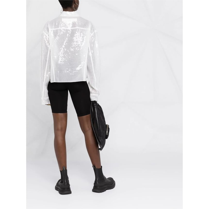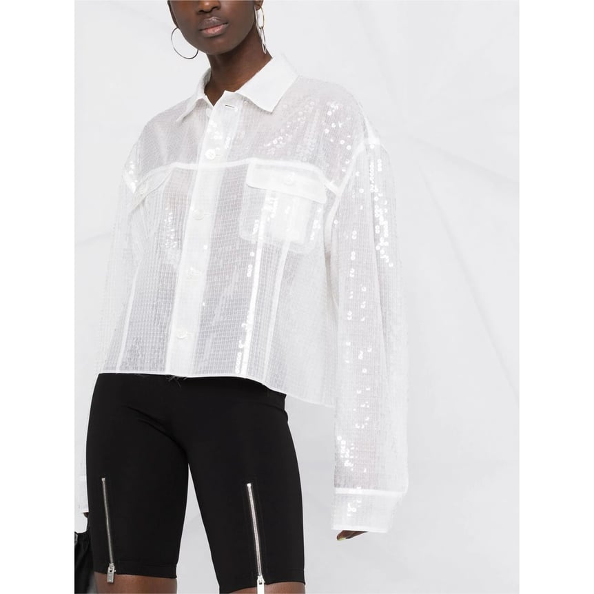 スパンコールで艶感がありつつもシースルーで抜け感をプラス。今私たちが欲しい白シャツがこちら。品行方正、でも遊び心のあるスマートなシャツはデニムや黒いスラックスなどにさらりと合わせたくなるようなエフォートレスなアイテムです。