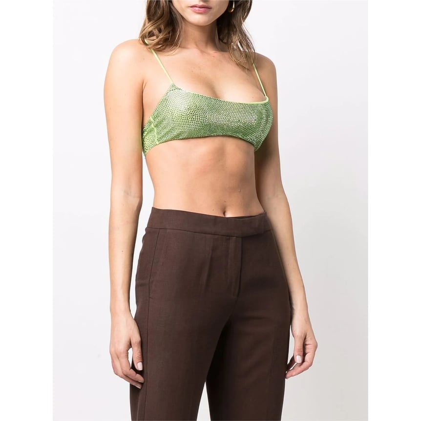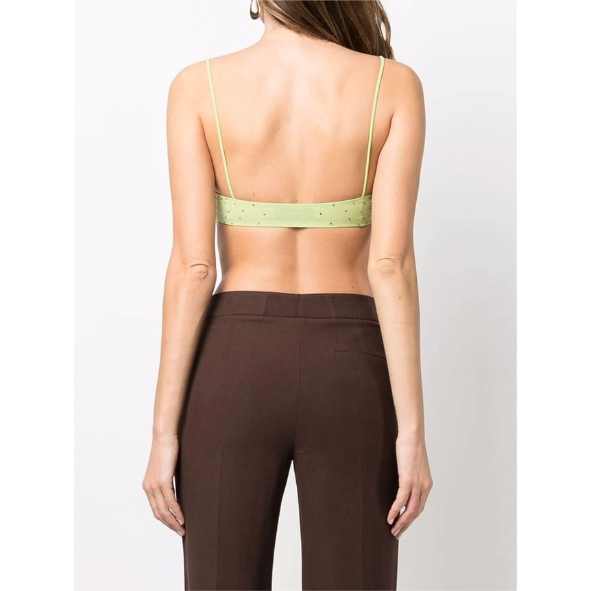 90'sムードが爆発するこちらのアイテムは「アンダマン(THE ANDAMANE)」から。極限まで細いスパゲッティストラップにグリーンのスパンコールが配されたブラトップは、シースルーや深いV字のトップスとスタイリングすればその日のコーデのポイントに。