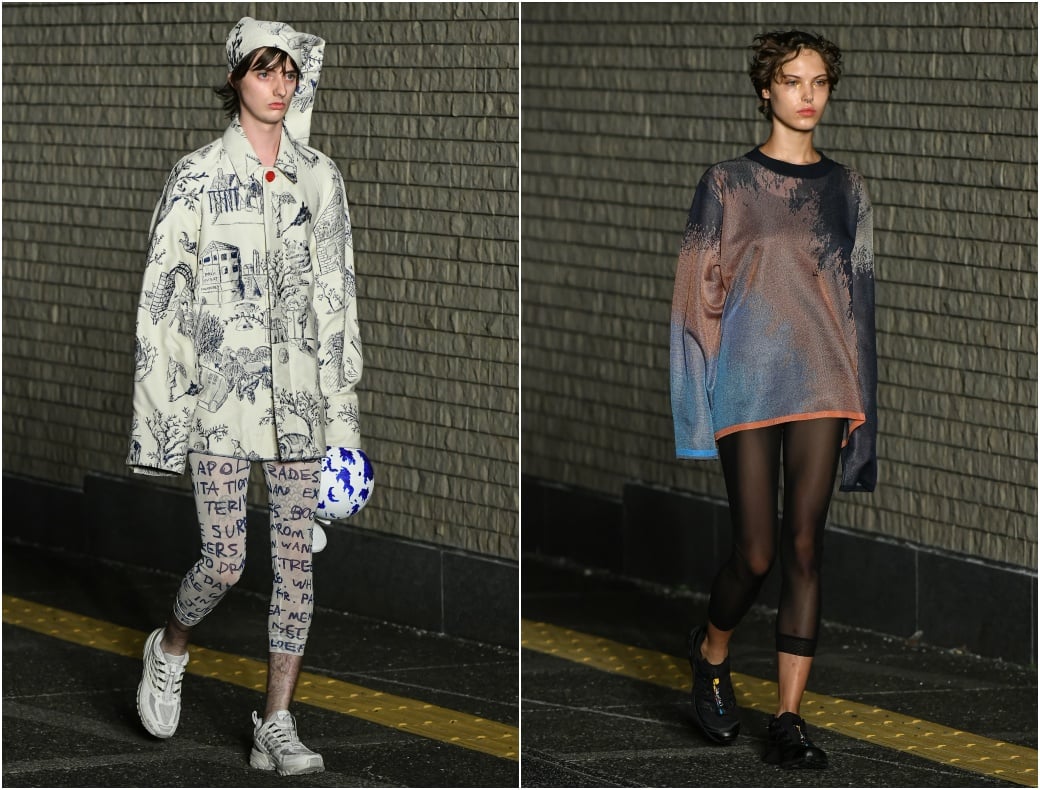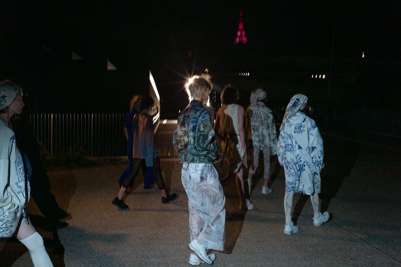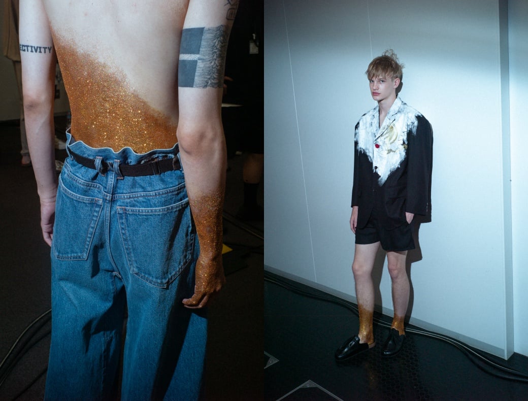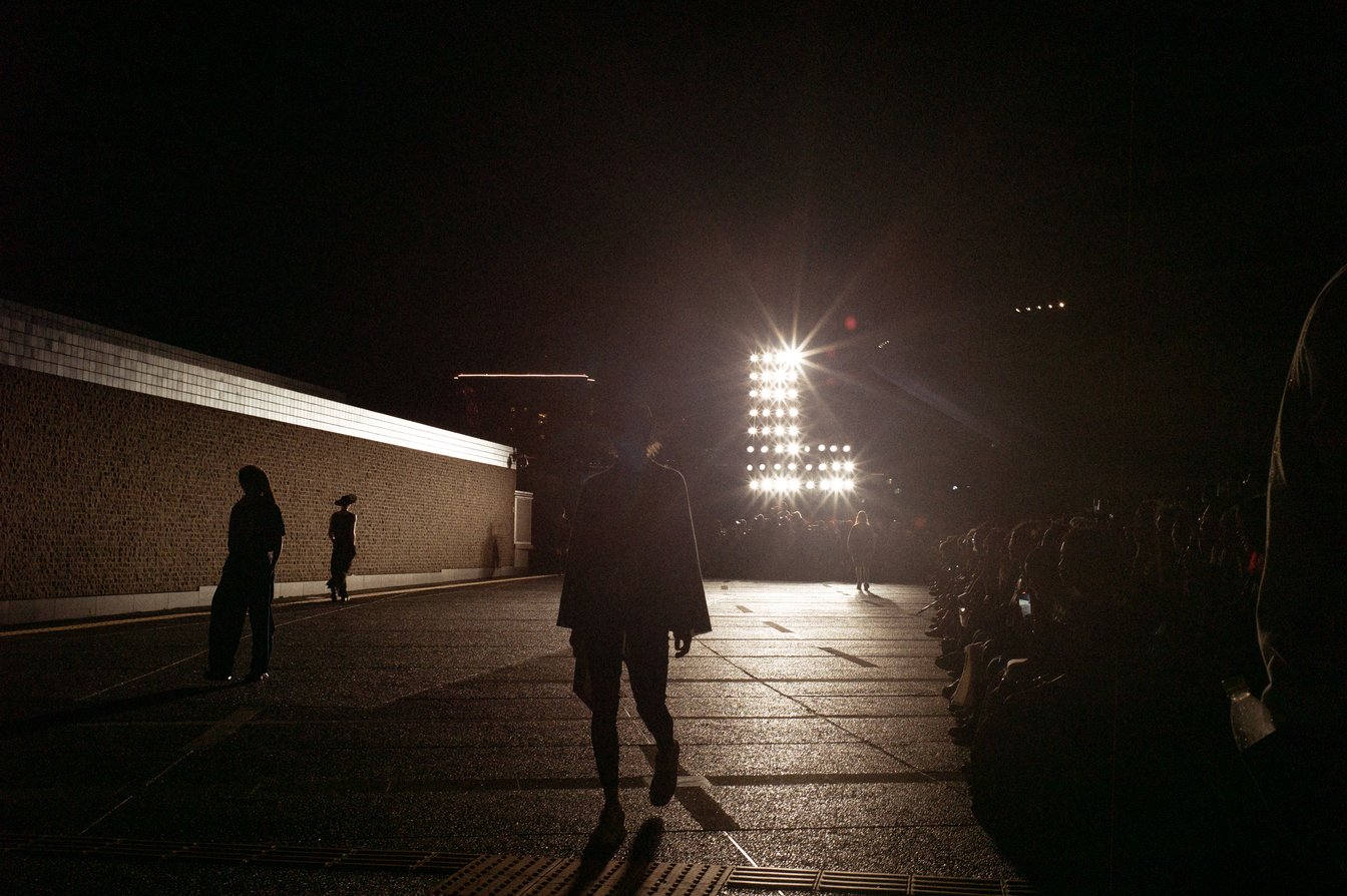 この日は雲間から絵に描いたような綺麗な月がくっきりと東京体育館の空に浮かんでいた。そんな風に現実世界とショーの合間で様々なレイヤーが重なった状態で2024年春夏コレクションが発表された。