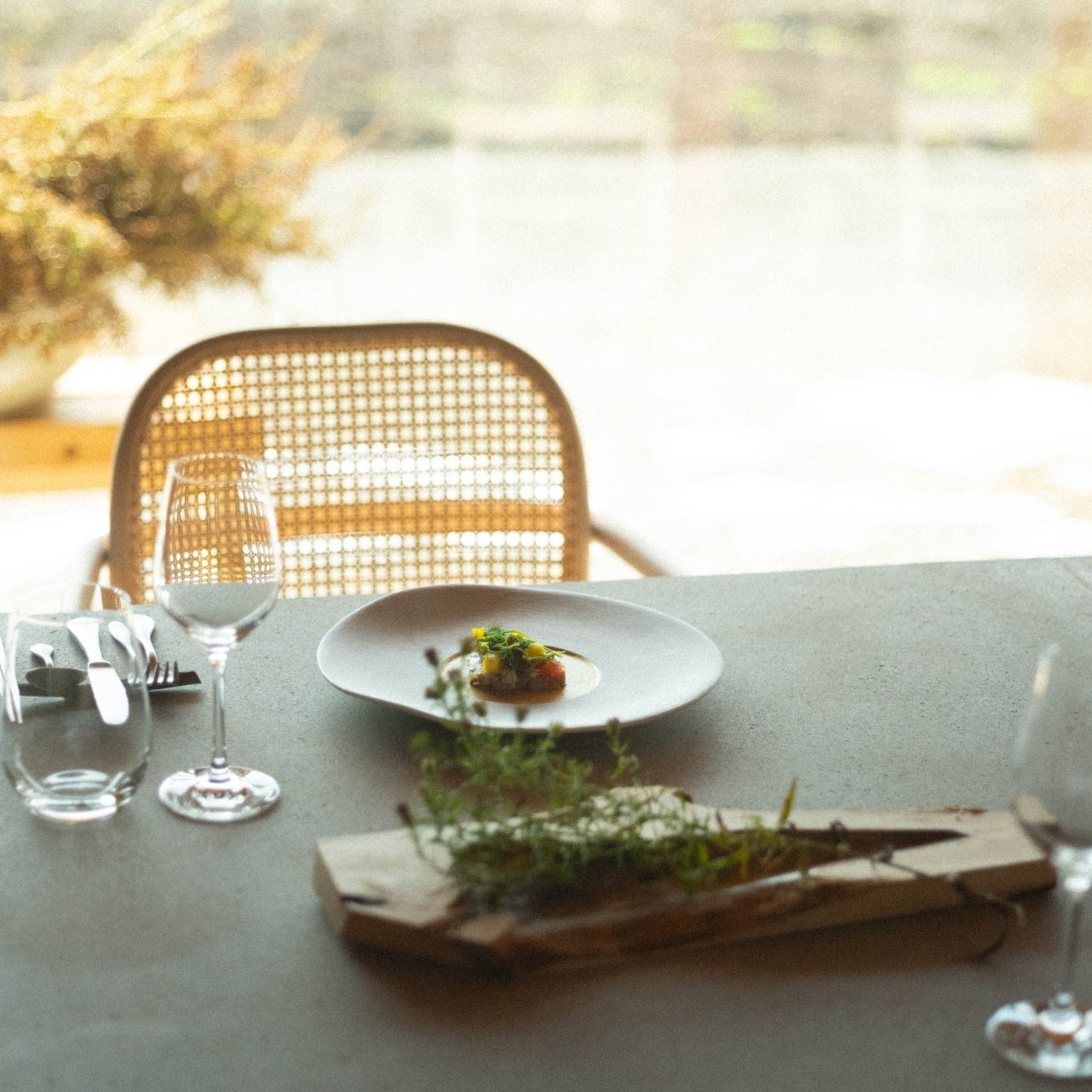 シェフ不在のレストランとしてオープンして数ヶ月経ちましたが、まだ始まったばかり。森を愛するつくり手たちが、経験を積みながらレストランを育むことが、現在の大きな課題です。お客さまとの対話を通じて日々進化し、季節の移ろいと共に変化する食材を活かし、料理に工夫と創造性を加え、絶えず進化させていきたいと思っています。