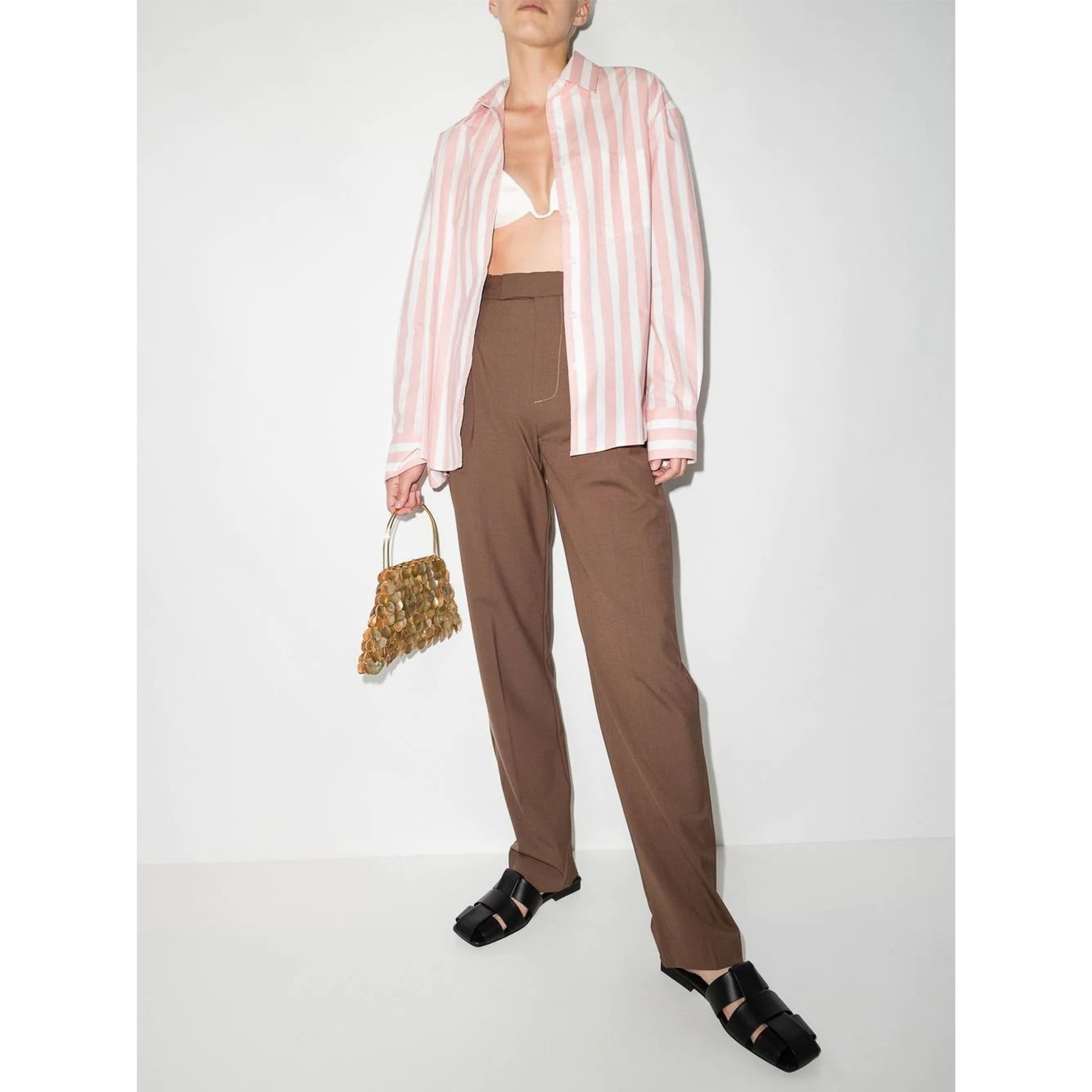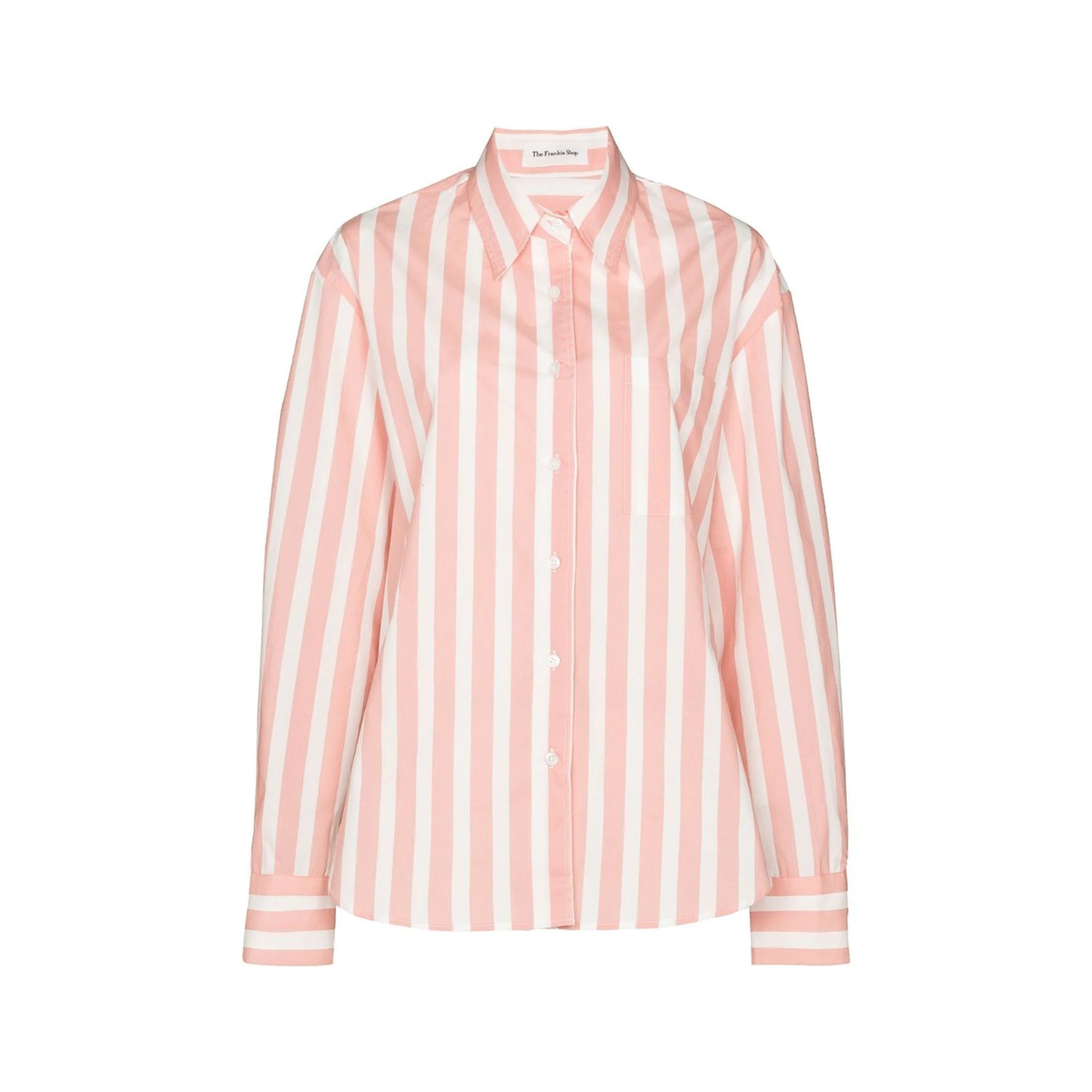 定番のウェアを、ミニマムで都会的なデザインに仕上げている「ザ フランキー ショップ(The Frankie Shop)」。レイヤードスタイルでも一枚でも映える、爽やかなパステルピンクのストライプシャツを、オーバーサイズで楽しみたい気分。