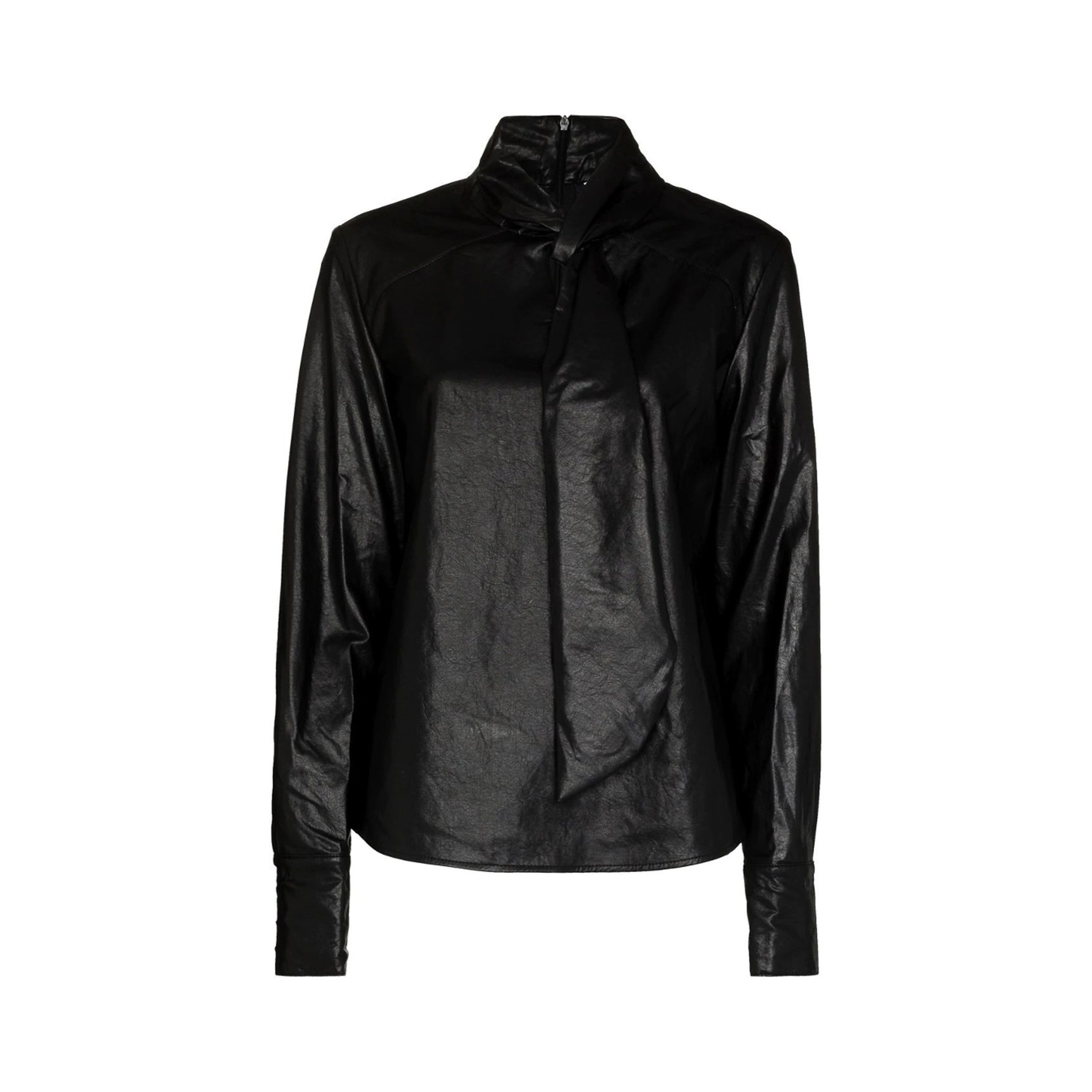 ハンサムな表情に魅了される、「エルブイアイアール(LVIR)」のブラックシャツ。アニマルフリーレザーで仕立てたモダンな一枚は、ひねりを効かせたツイストネックディテールで、洗練された無二のスタイリングを叶えます。