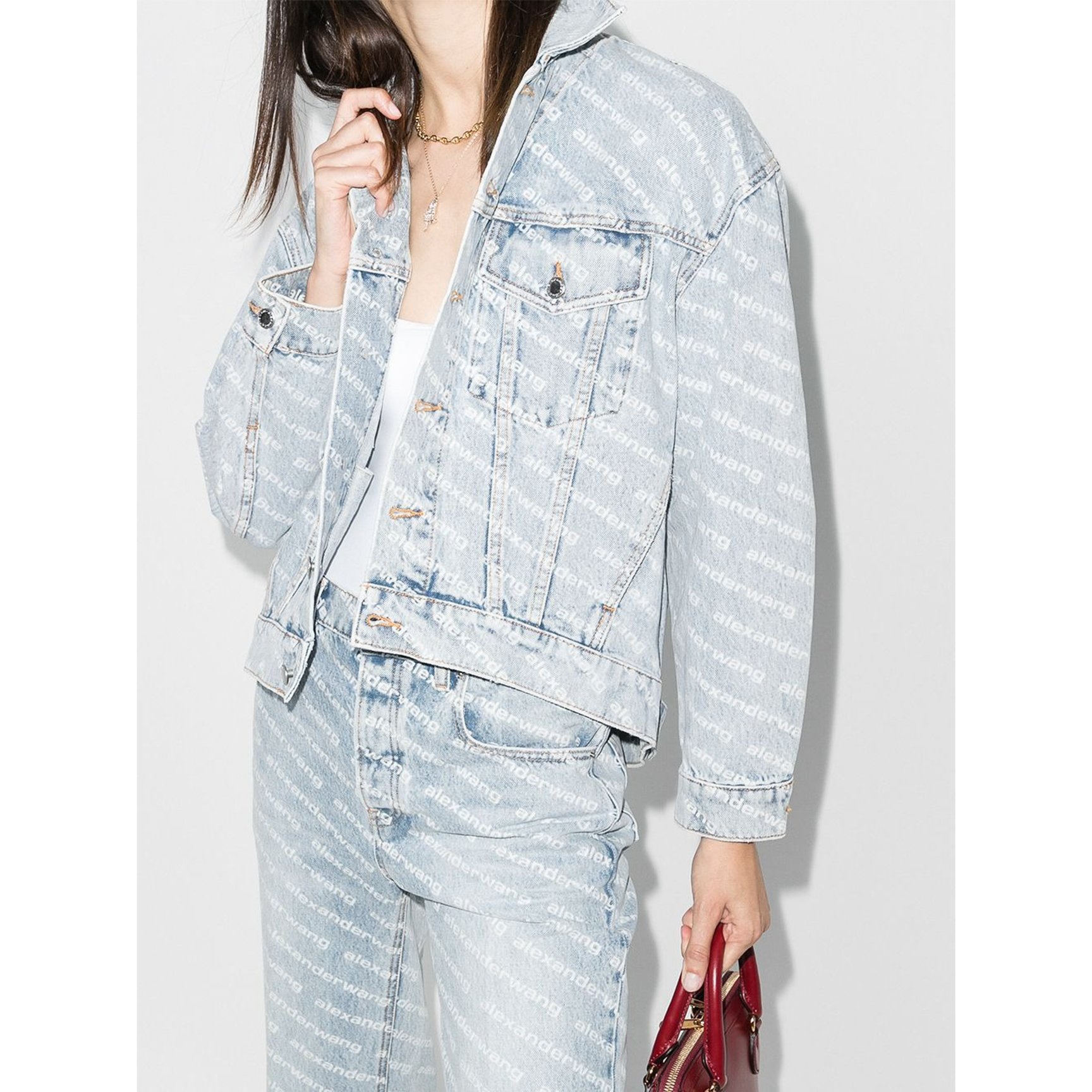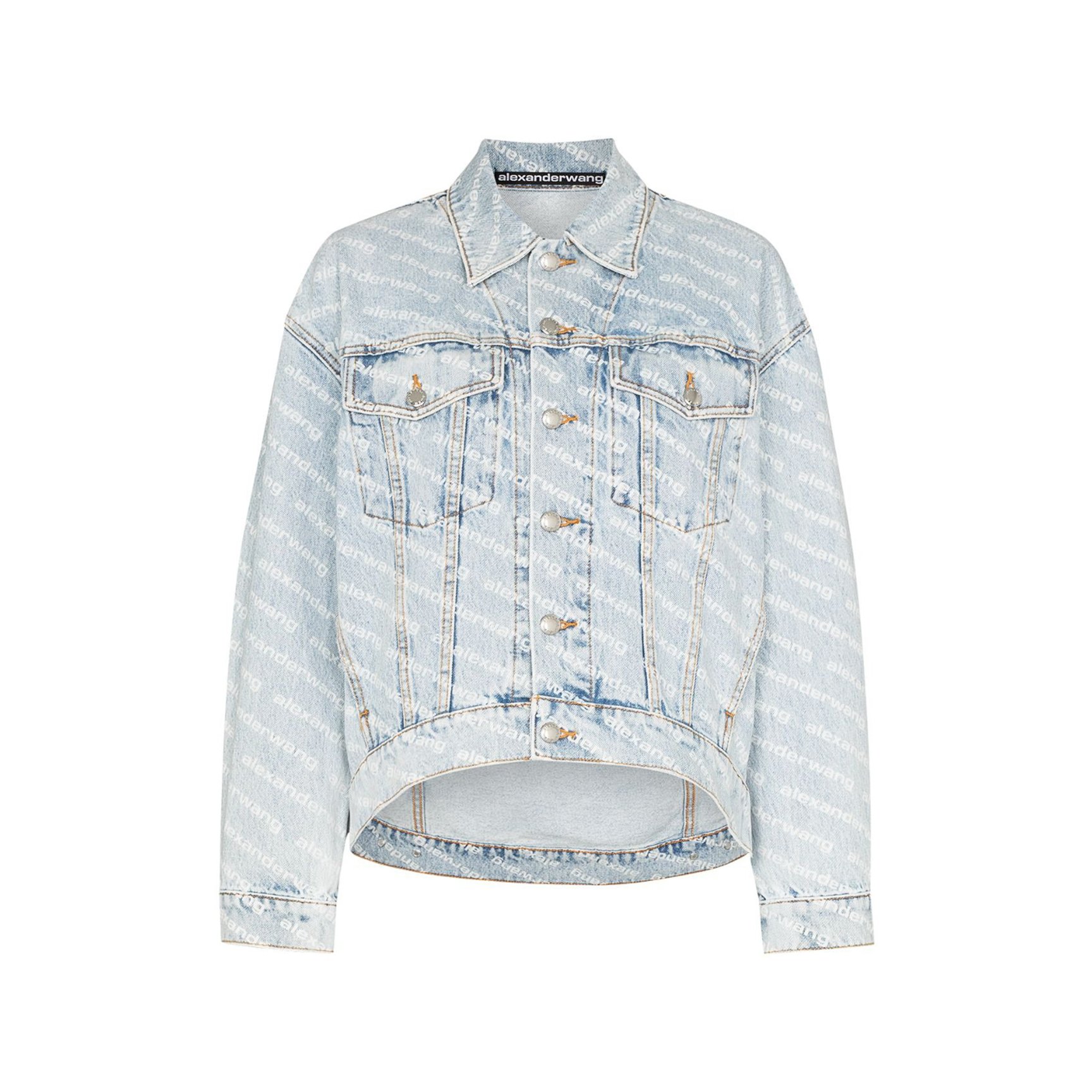 ロゴが全面にプリントされた、ストリートな気分を盛り上げる「アレキサンダーワン(alexanderwang)」のデニムジャケットは、ライトウォッシュで軽やかな印象に。フロント部分を短くカットしボディラインを美しく見せる、レディな一着です。