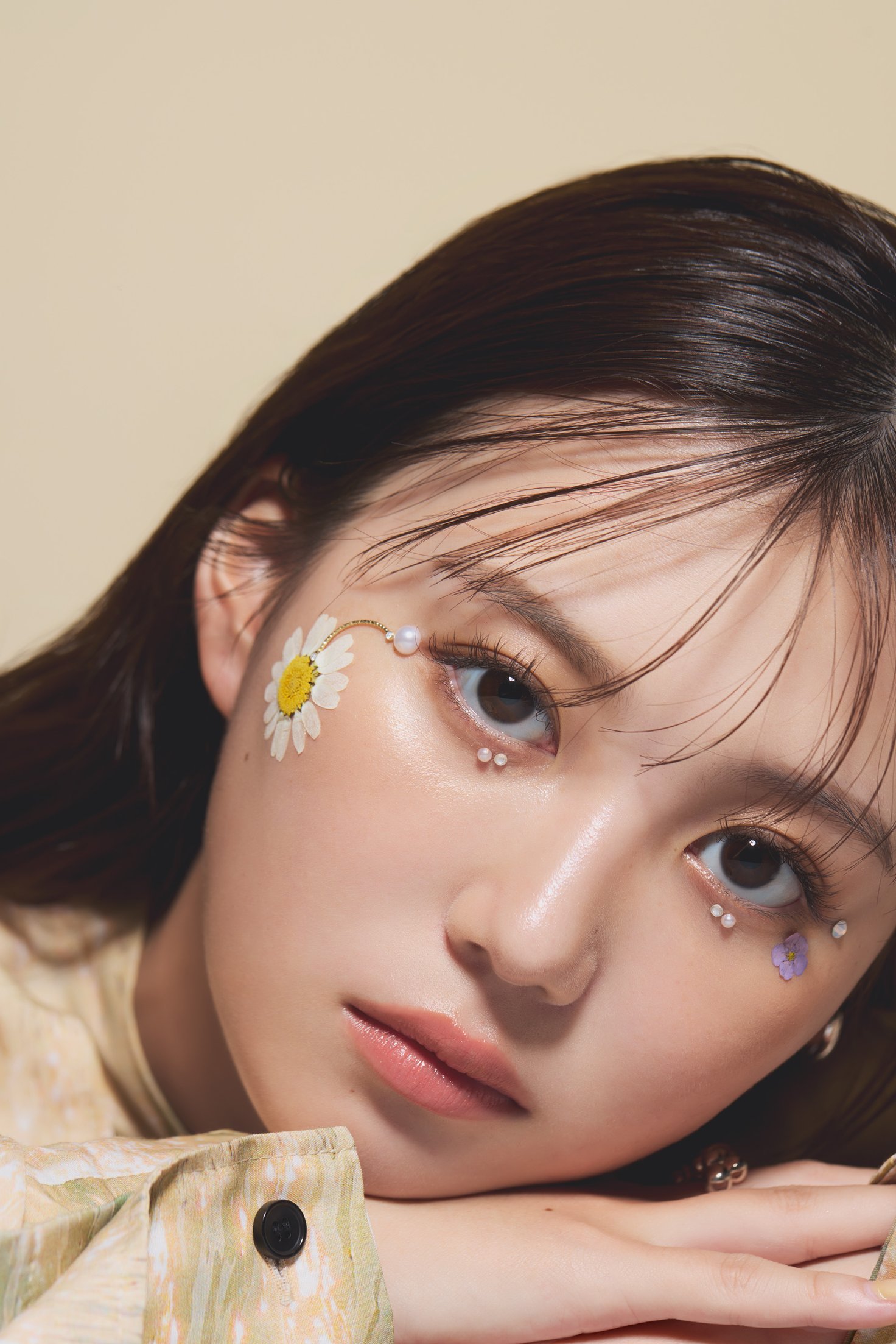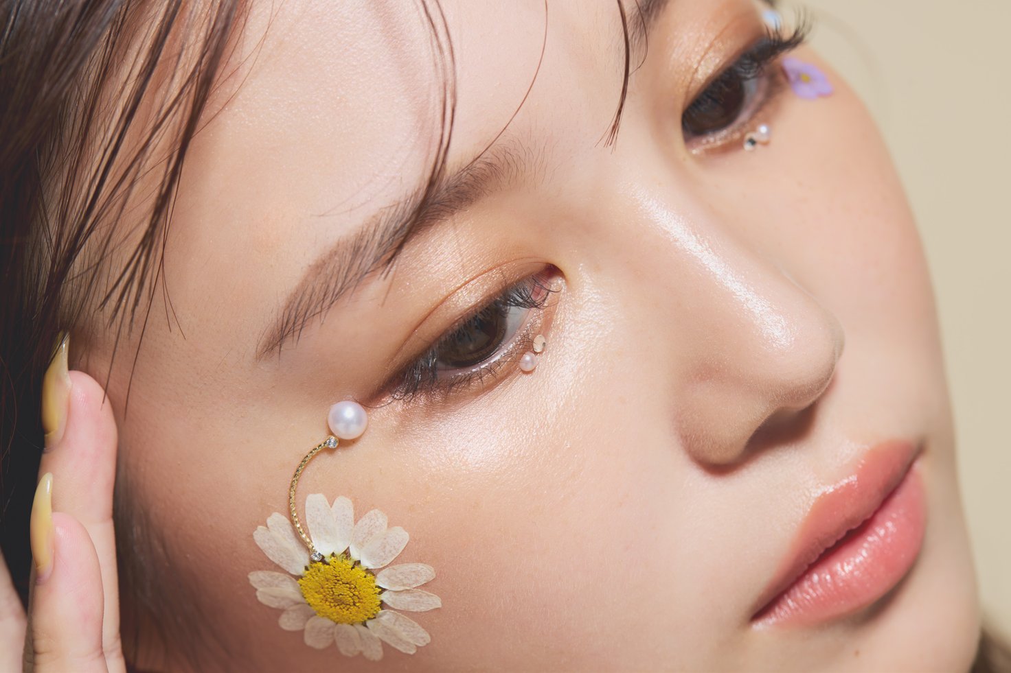 三原羽衣:上品なフラワーパーツを“頬に咲かせて”エレガントなスタイルに