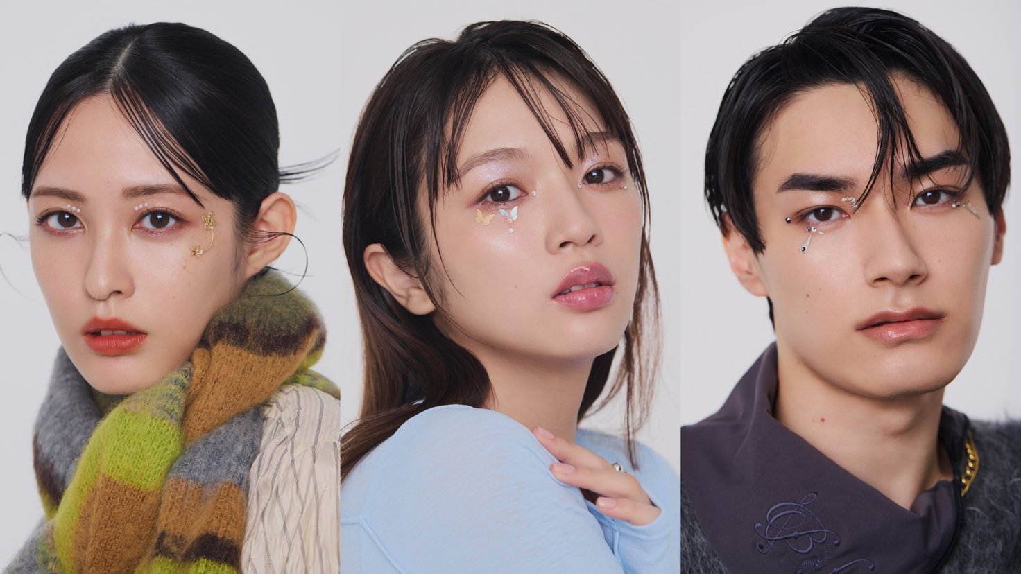 スキンアクセサリー™︎だからできる遊び心のあるスタイルを、今をときめくKAEDE(f5ve)さん、田中芽衣さん、三原羽衣さんの3人がトライ!色柄大きさのバリエーションが豊かなパーツは、クール、フェミニン、エレガント、プレイフルなど多彩なスタイルの自己表現を簡単に叶えてくれます。思いっきり自分らしく、デコラティブでおしゃれなメイクを楽しんで!