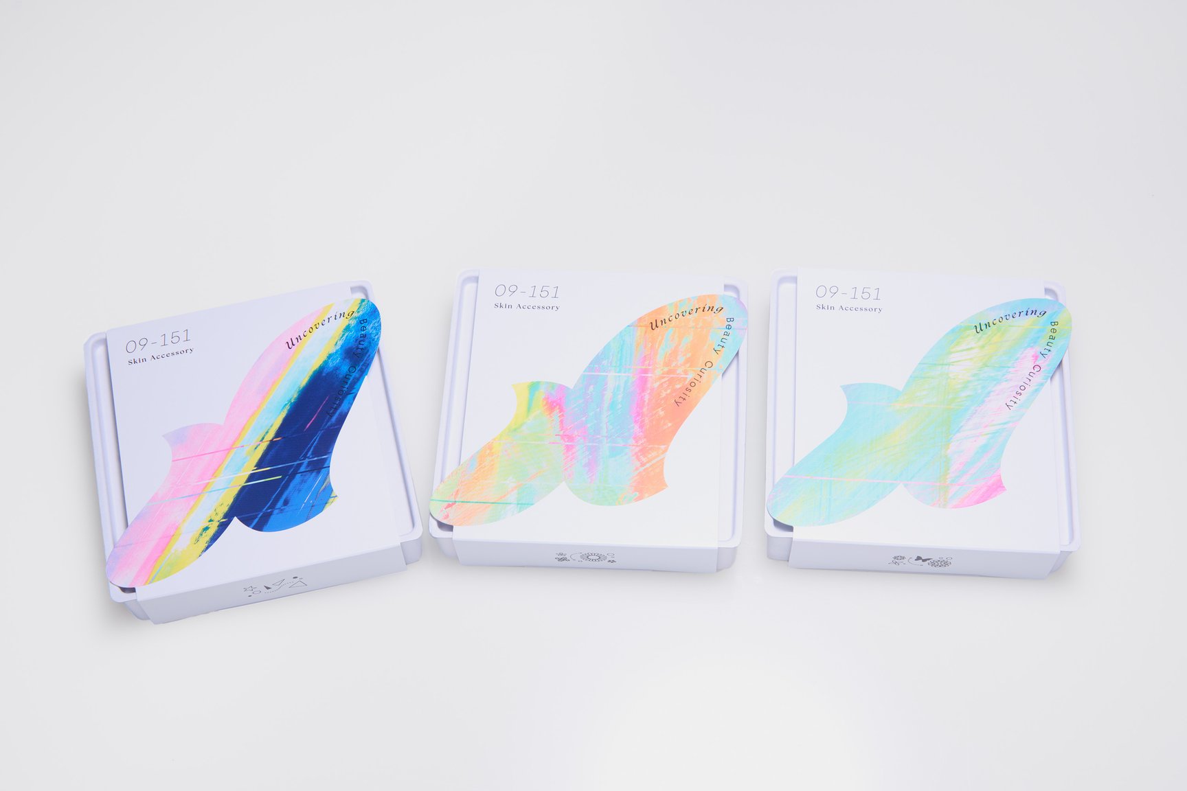 生活者と共に「世の中にない」ビューティの価値を創造する、資生堂研究所のオープンイノベーションプログラムfibonaから登場した、スキンアクセサリー™︎。セカンドスキン技術の特長である肌と一体化させる人工皮ふの技術を応用しています。専用のジェルとミストを使うことで、アクセサリーパーツが肌と一体化して固定。伸縮性・密着性によって剥がれにくく、そして剥がすときの肌への負担を減らした使いやすさと共に、通気性を兼ね備え肌に優しく、心地よさも実現。いつものメイクに取り入れれば、もっと自由にファッショナブルにメイクを着飾ることができます。ラインナップは、トライアングルやラインストーンのチェーンなどメタリックなパーツのセット「スキンアクセサリー™︎(A)」、繊細で華やかなフラワーやパールなどが揃うセット「スキンアクセサリー™︎(B)」、幻想的なバタフライとストーンのパーツを組み合わせたセット「スキンアクセサリー™︎(C)」の3種類。