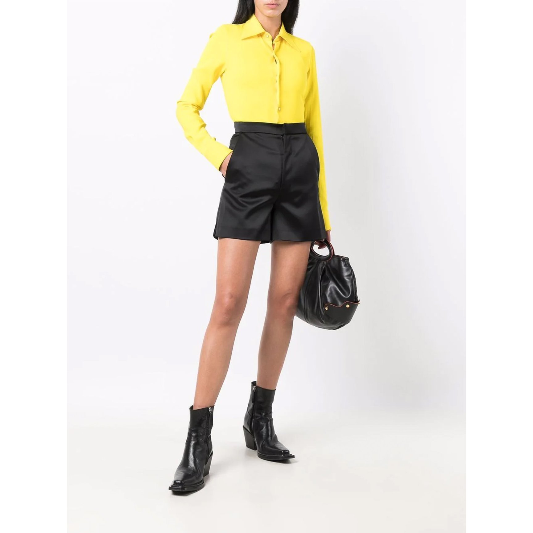 サテン仕上げで高級感抜群、ブラックカラーかつハイウエストで1着は持っておきたいデザインのショートパンツは「アミ・パリス(AMI Paris)」のもの。すっきりとしたシルエットなので、細見え効果も抜群。どんなトップスにも合わせやすいブラックカラーで、マルチに活躍すること間違いなしの1着です。