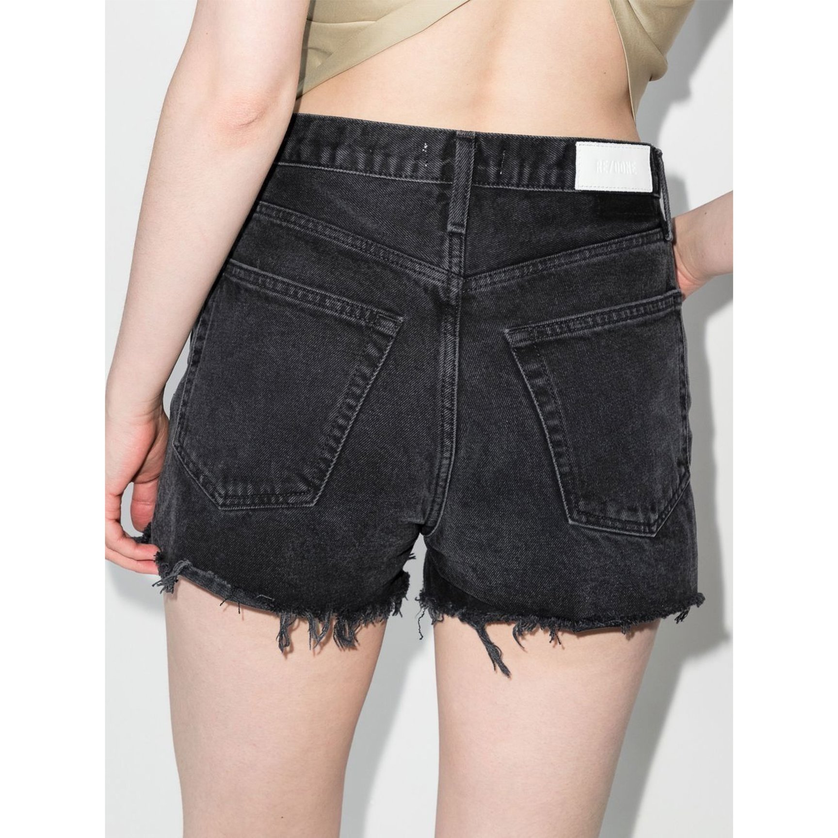 ヴィンテージデニムを解体し、再構築するユニークなクリエーションで話題のエシカルブランド「リダン(RE/DONE)」から登場するショートパンツ。引き締め効果抜群のブラックデニムを再構築した1着です。あえて切りっぱなしのデザインが、グランジ感を漂わせます。