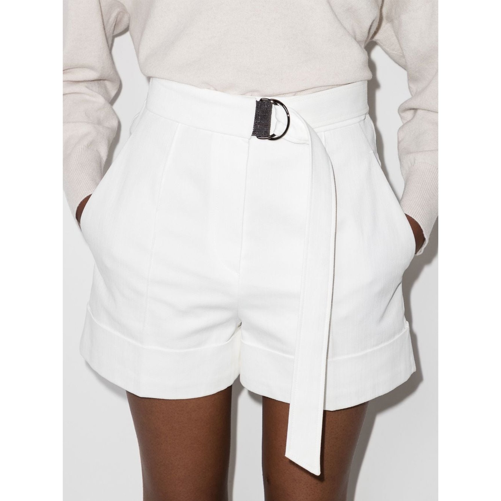 「ブルネロ・クチネリ(Brunello Cucinelli)」のショートパンツは、バックルウエストとテーラードによる美しいシルエットがワンポイント。ちょうど良い丈感と洗練されたホワイトカラーで、上品にショートパンツを着こなしたい時に最適です。真鍮100%の光沢感あるバックルもエレガントさをプラスしています。