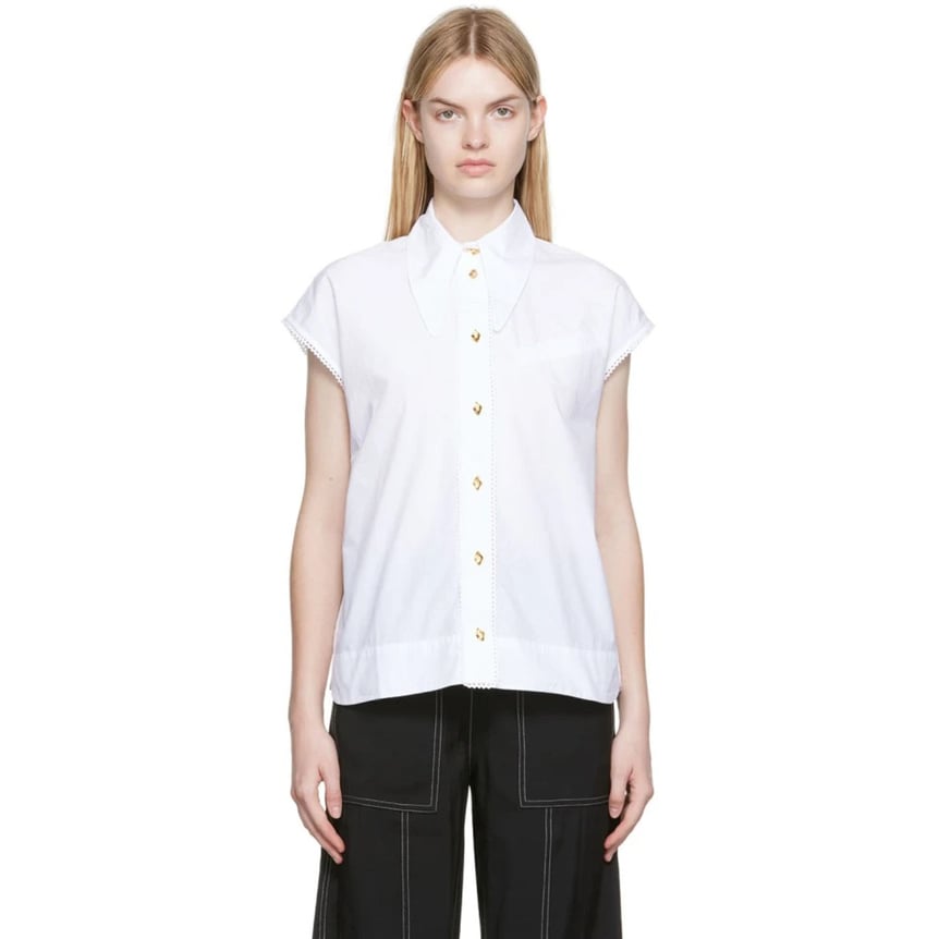 デンマーク発「ガニー(GANNI)」の、オーガニックコットンで作られたシャツは、フレンチスリーブやゴールドのボタンなど、レディライクなディティールがポイントです。大きな襟がよりクラシックな印象を与えてくれます。