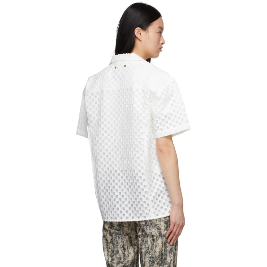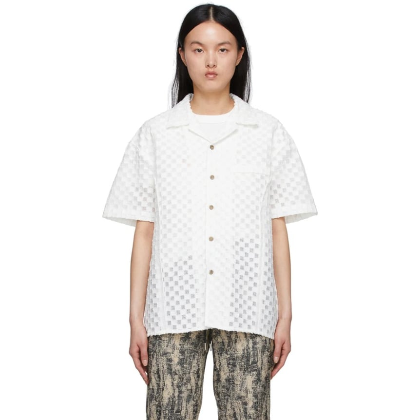 「アンダーソン ベル(Andersson Bell)」のオーバーシルエットの開襟シャツをご紹介。潔いホワイトカラーに、セミシアーなチェッカーボード柄で涼しげな印象です。インナー次第で、異なる表情を見せてくれる面白い一着です。
