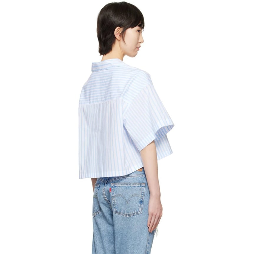 「メゾン キツネ(MAISON KITSUNÉ)」のシャツは、ゆったりとしたシルエットとクロップド丈の今の気分にマッチする一枚。ブルーのストライプで爽やかさを演出した開襟シャツは、ボタンを開けてジャケットとしても使えそう。