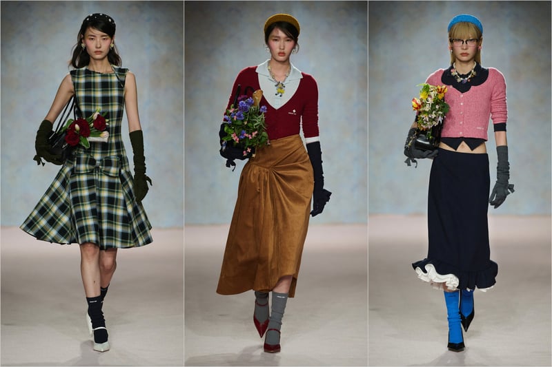 まるで彼女たちが使わなくなった思い出の部屋のように、色褪せた壁で覆われた会場では、ショーが始まる前から多くの来場者がSNS用の写真や動画を撮影し賑わいを見せていた。ファーストルックの登場から最後まで一貫して、これまでのコレクションでシグニチャーとして大胆に施されたリボンやフリルなどガーリーなモチーフは控えめで、全体的にレイヤードとロンググローブをポイントに今までの少女らしさから少し大人びた印象を描いていたように思う。コレクションノートにも「女性の複雑性や多面性を描きたかった」と記してあったが、今までガーリーで可愛い印象があったシュシュ/トングのイメージをアップデートするコレクションになるのだろうと次々と登場するルックを見ながら感じていた。
