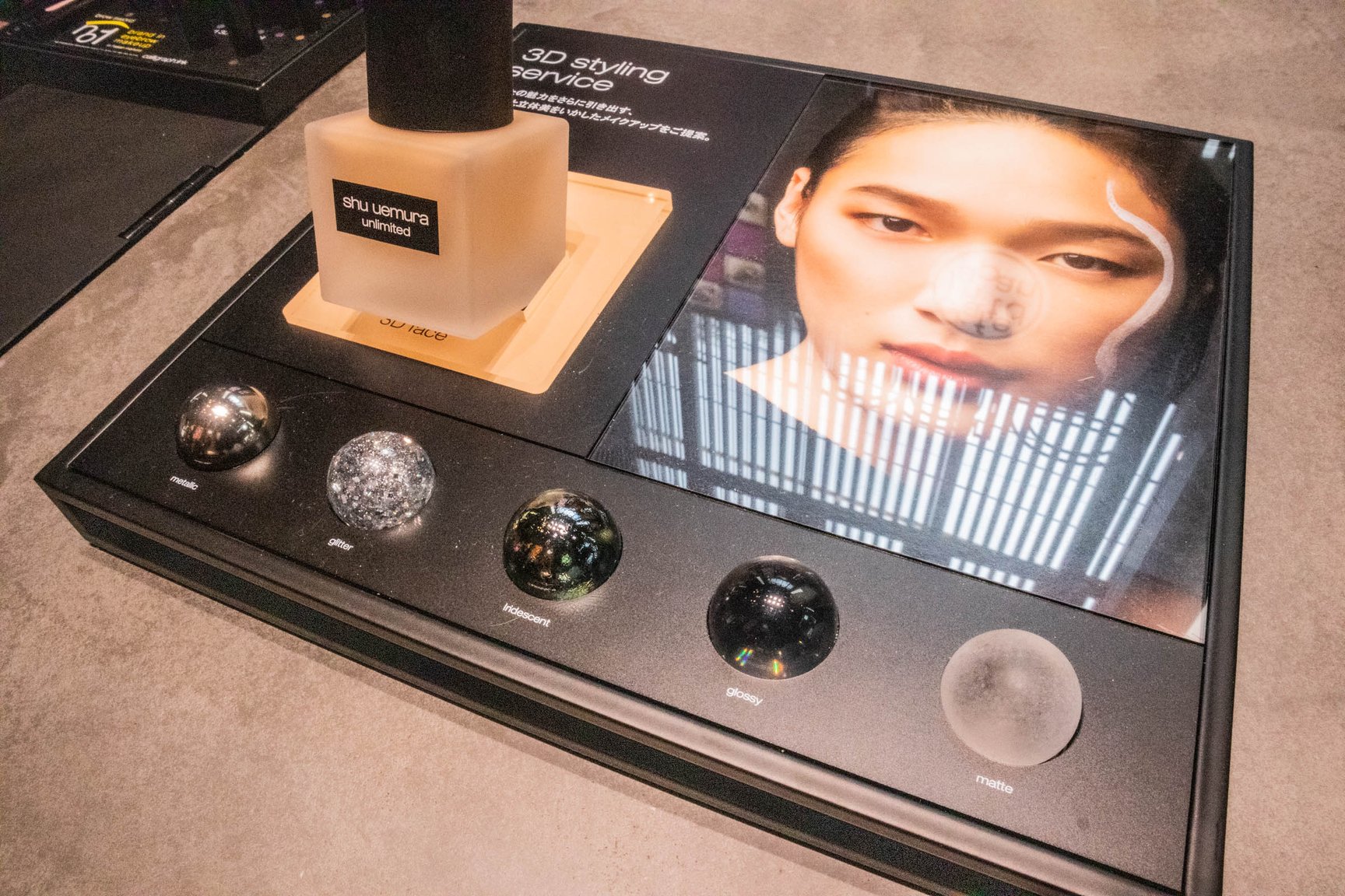 2つ目の体験コンテンツは、予約制でアーティストとマンツーマンでメイク方法のレクチャーを受けられる「3D スタイリング アトリエ」。骨格やフェイスバランスに基づき、なりたい理想のメイクや個性を活かすメイク方法を教えてくれます。アイメイクに特化した「3D アイ&ブロー」(8800円)や肌質や仕上がりの好みにも対応するトータルメイクメニュー「3D フェイス」(1万3420円)、「メンズグルーミングレッスン」(7260円)といったメニューを用意しています。