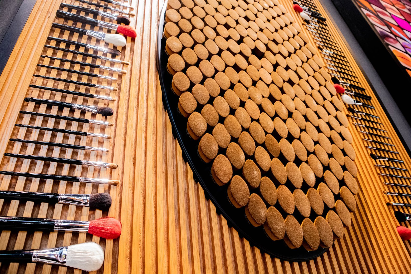 同店限定サービスとして、メイクブラシのクリーニングサービスを提供。ブラシに残ったカラーや油分をプロが洗浄します。2018年以降に発売されたシュウ ウエムラのブラシが対象で、1回1650円で5本まで洗浄することが可能です。(7月19日から実施)