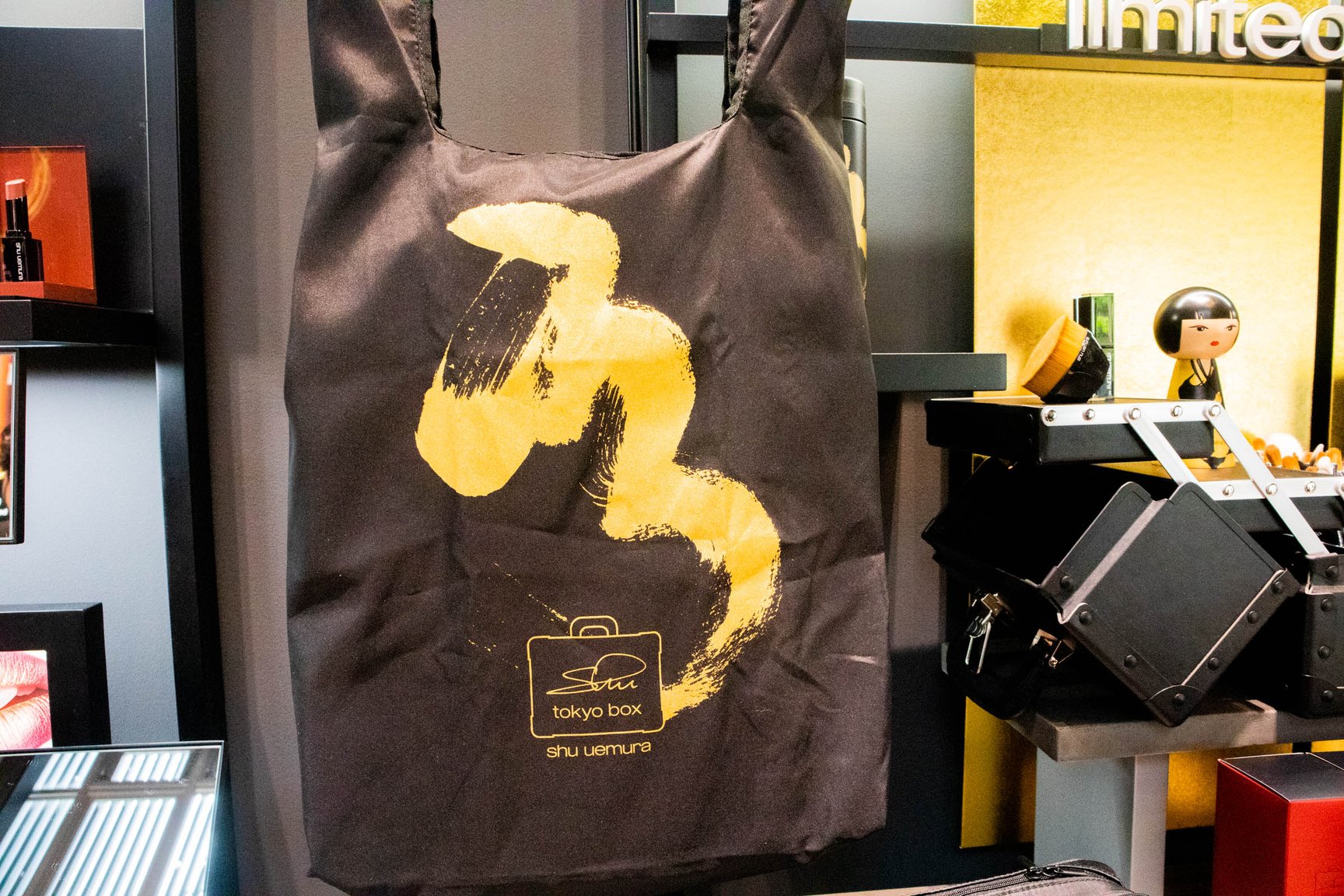 初のグローバル旗艦店出店を記念し、筆書きによる「秀(shu)」のシグネチャーを施したフラッグシップコレクションを用意。こけし(1万1000円)やポーチ(3080円)、タンブラー(3520円)、マスク(1980円)、トートバッグ(2200円)、バニティバッグ(3520円)、ボックスバッグ(2200円)の7点が揃います。