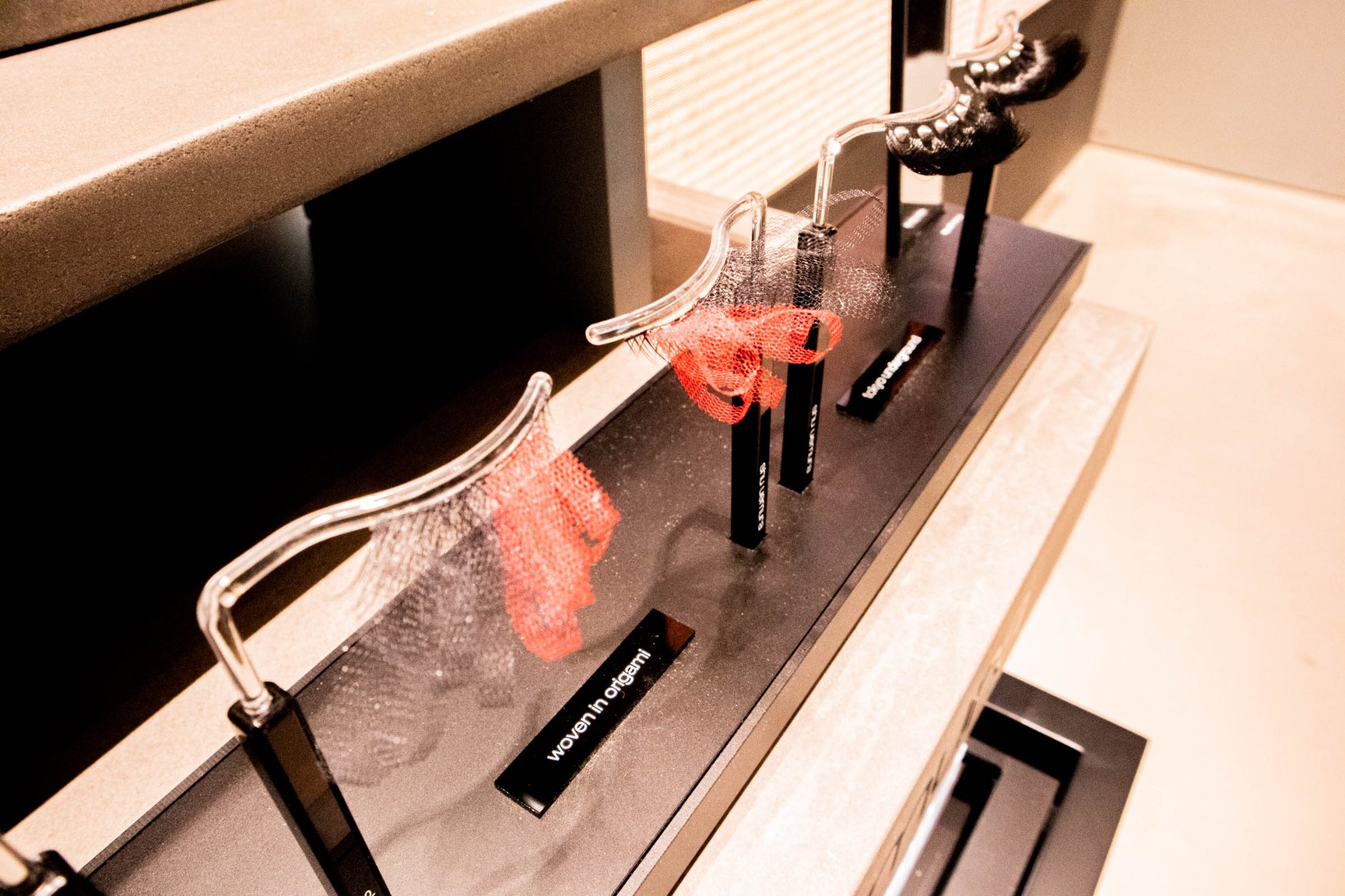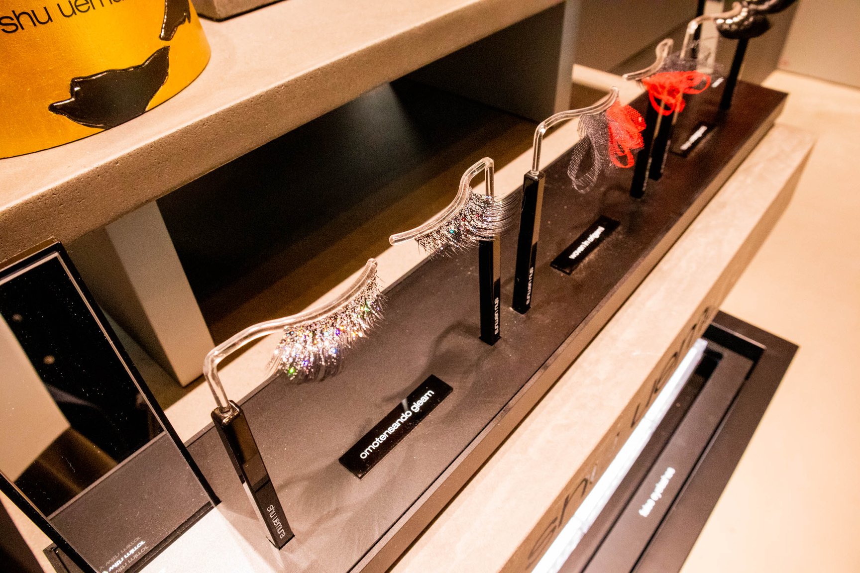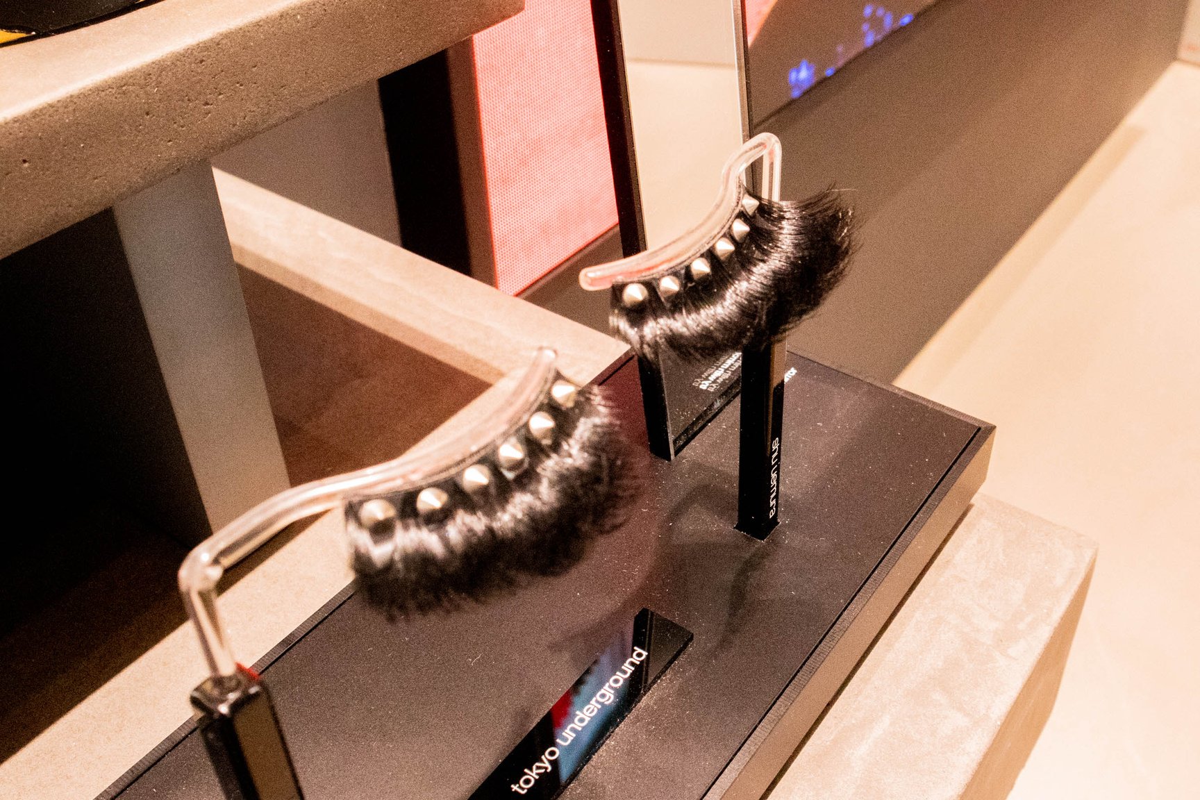 売り場は、1983年にビューティブティックで「トウキョウ ラッシュ」として設置していたアーティスティックなつけまつ毛を揃えたウォールを現代版としてリブートしたデザインに。店頭にあるQRコードを読み取ると、限定版のつけまつ毛をARフィルターで試すことができます。