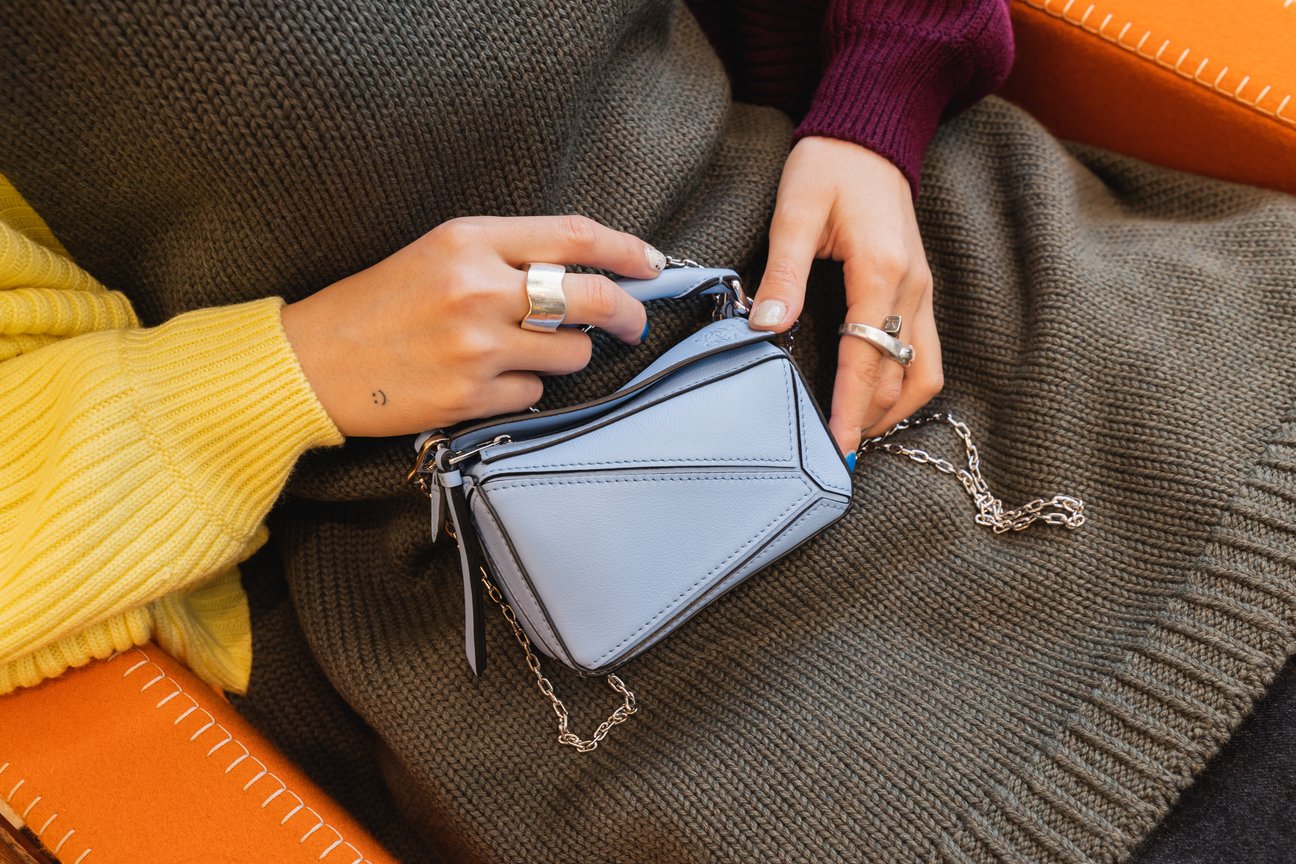 「ロエベ(LOEWE)」のアイコンバッグ「パズル」から、ミニバッグよりもさらに小さなナノサイズが登場。手のひらサイズの12.5cmの新作「パズル バッグ ナノ」には、アクセサリー感覚で持つことができるようチェーンストラップが付属しています。Michelleお気に入りイエローと、この日店頭に並んでいたライトブルーとタンのほか、ルージュとアップルグリーンの5色展開です。