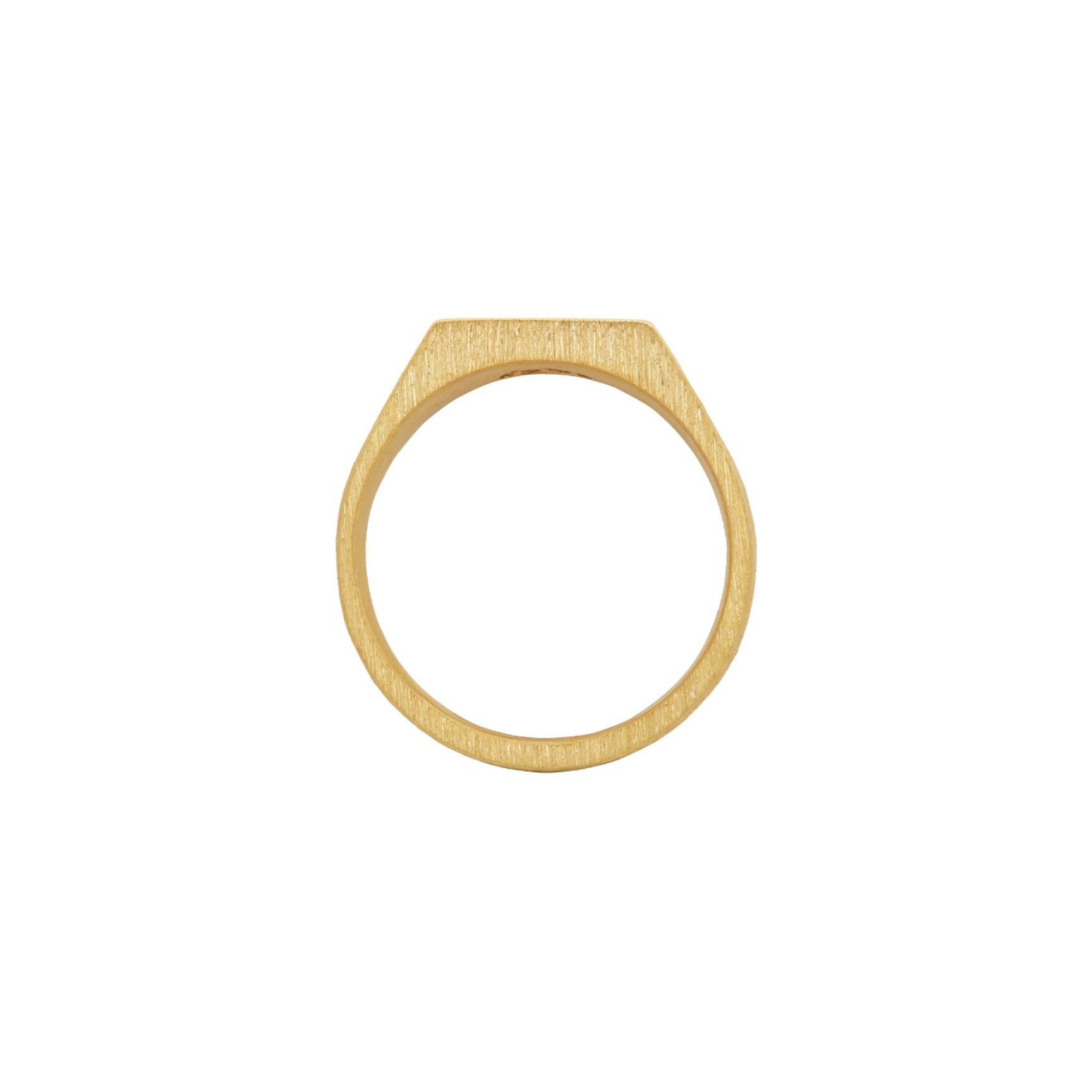 「オール ブルース(ALL BLUES)」のシグネットリングは、正方形の端正なフォルム。18Kゴールドの輝きを強調したポリッシュ仕上げのフロントと、テクスチャーのあるブラッシュ仕上げのサイドとで異なる質感が楽しめます。ハンドメイドです。