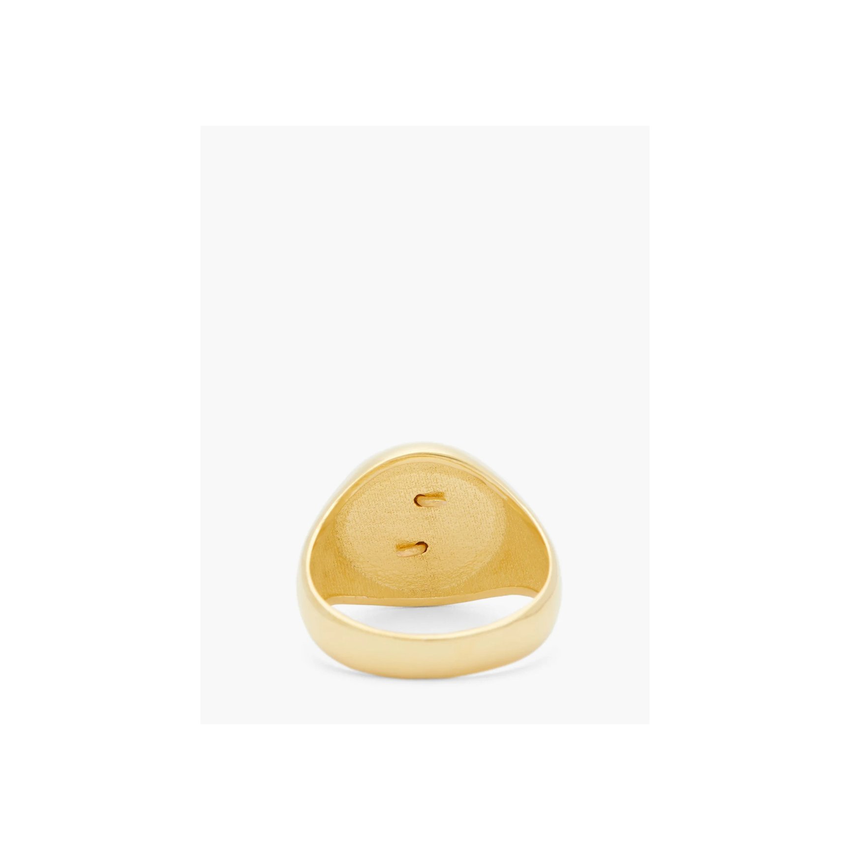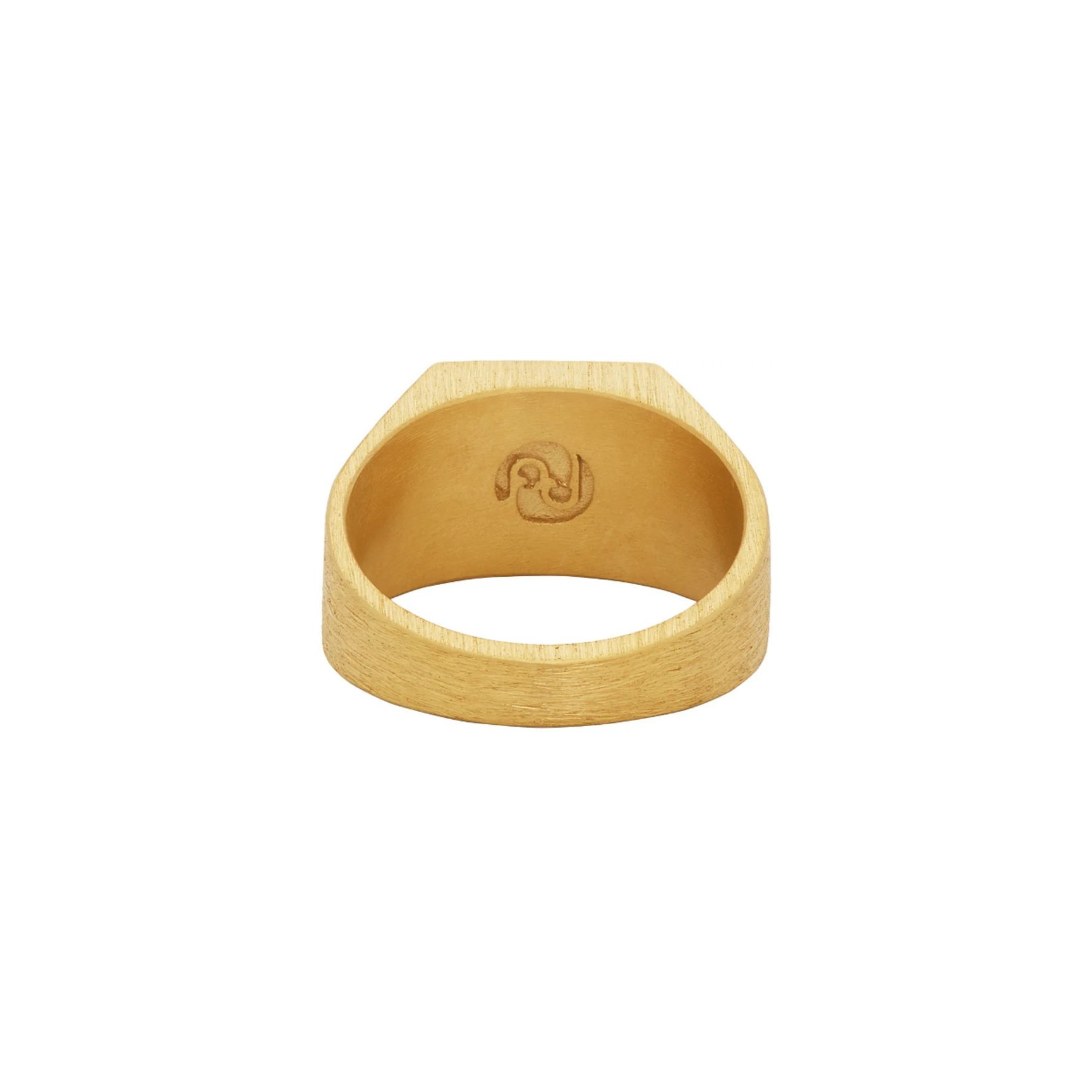 最近、じわじわ増えているのが、こんな横長スリムなオーバルシェイプのシグネットリング。オーストラリア発の「ディア レターマン(Dear Letterman)」のリングは、上質な素材と伝統的な技法で製作されています。縁のデザインがアクセントになっているこちらのリングは、24Kゴールドのメッキが施されたシルバー製です。
