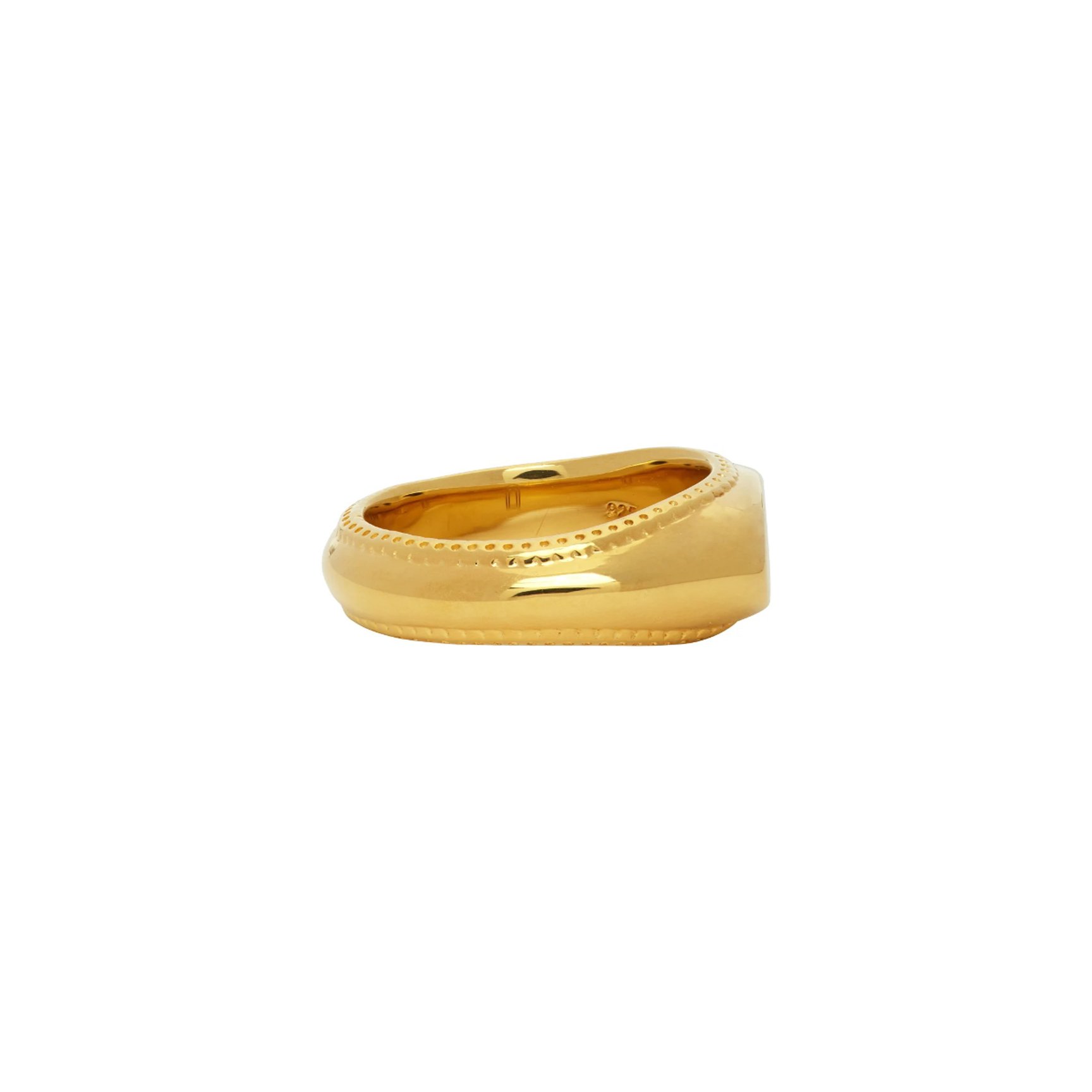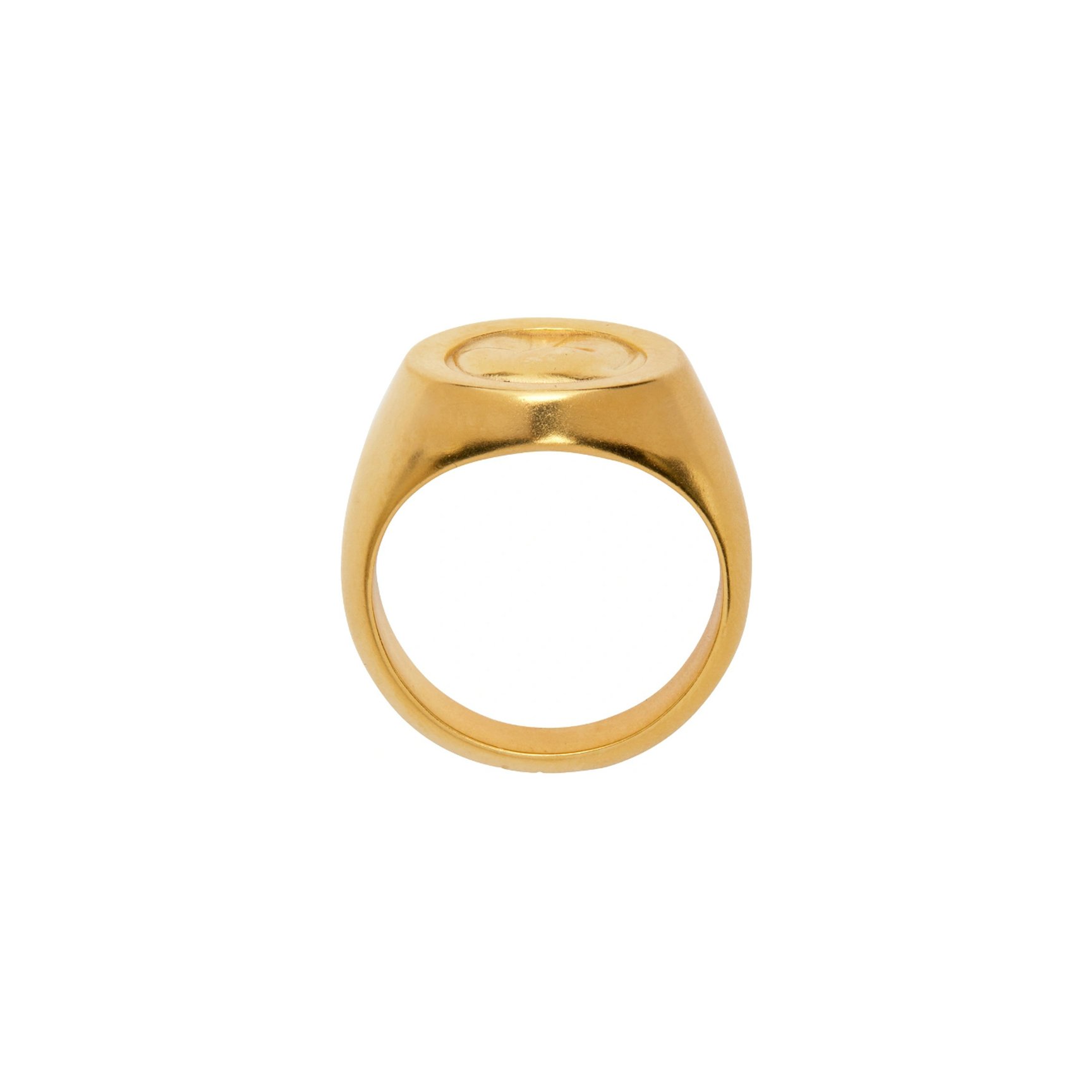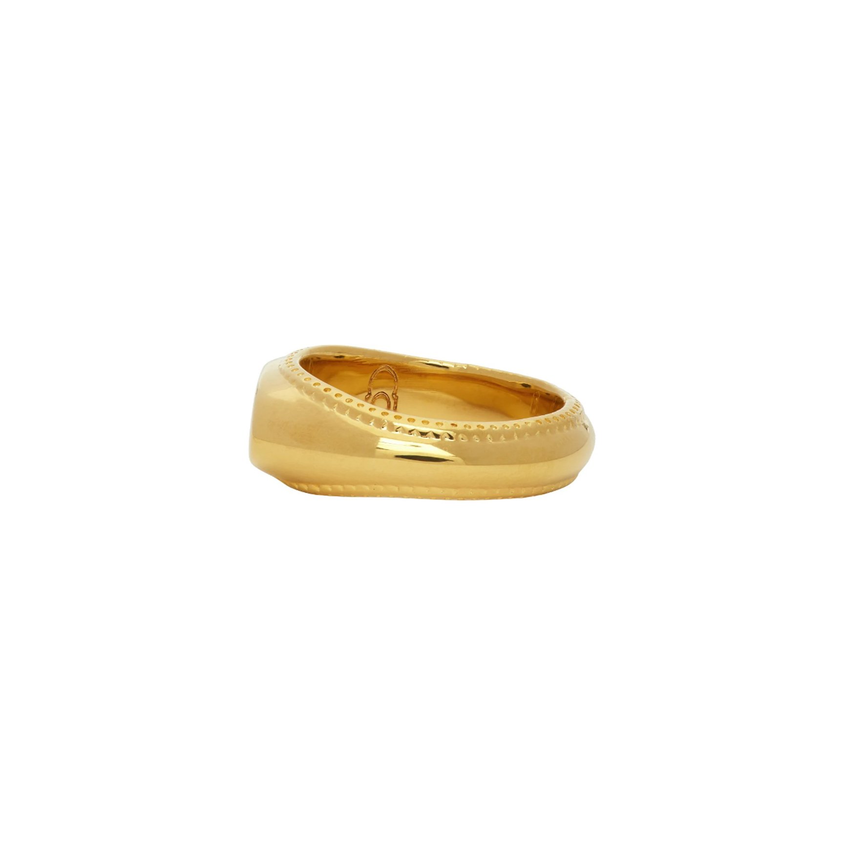 「ボッテガ・ヴェネタ(BOTTEGA VENETA)」のシグネットリングは、まるでクッションのようにぽってりとしたスクエアモチーフがポイント。大ぶりですが、無骨になりすぎないエレガントさも感じさせるデザインです。ブラス製。