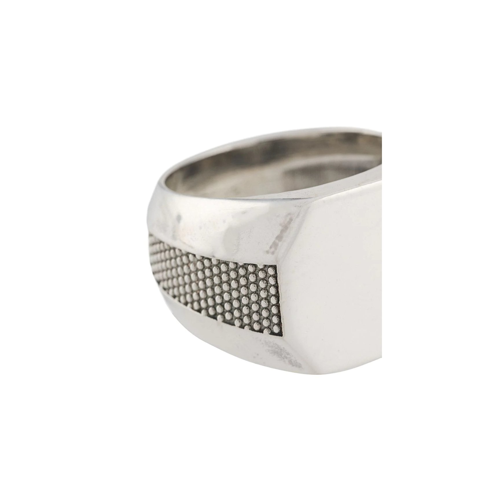 「エマヌエーレ ビコッキ(EMANUELE BICOCCHI)」のシルバーのシグネットリングです。ヘキサゴンシェイプでさりげなく個性を主張できます。サイドにはエンボス加工のライン入り。