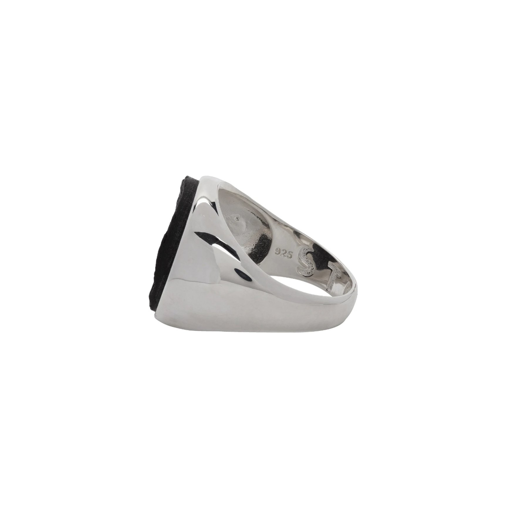 ニュージーランド発のストリートウェアブランド「ストールン ガールフレンズ クラブ(Stolen Girlfriends Club)」。こちらのリングは、未加工のブラックジェイド(ヒスイ)がフロントに取り付けられています。天然素材ならではのラフさが◎。