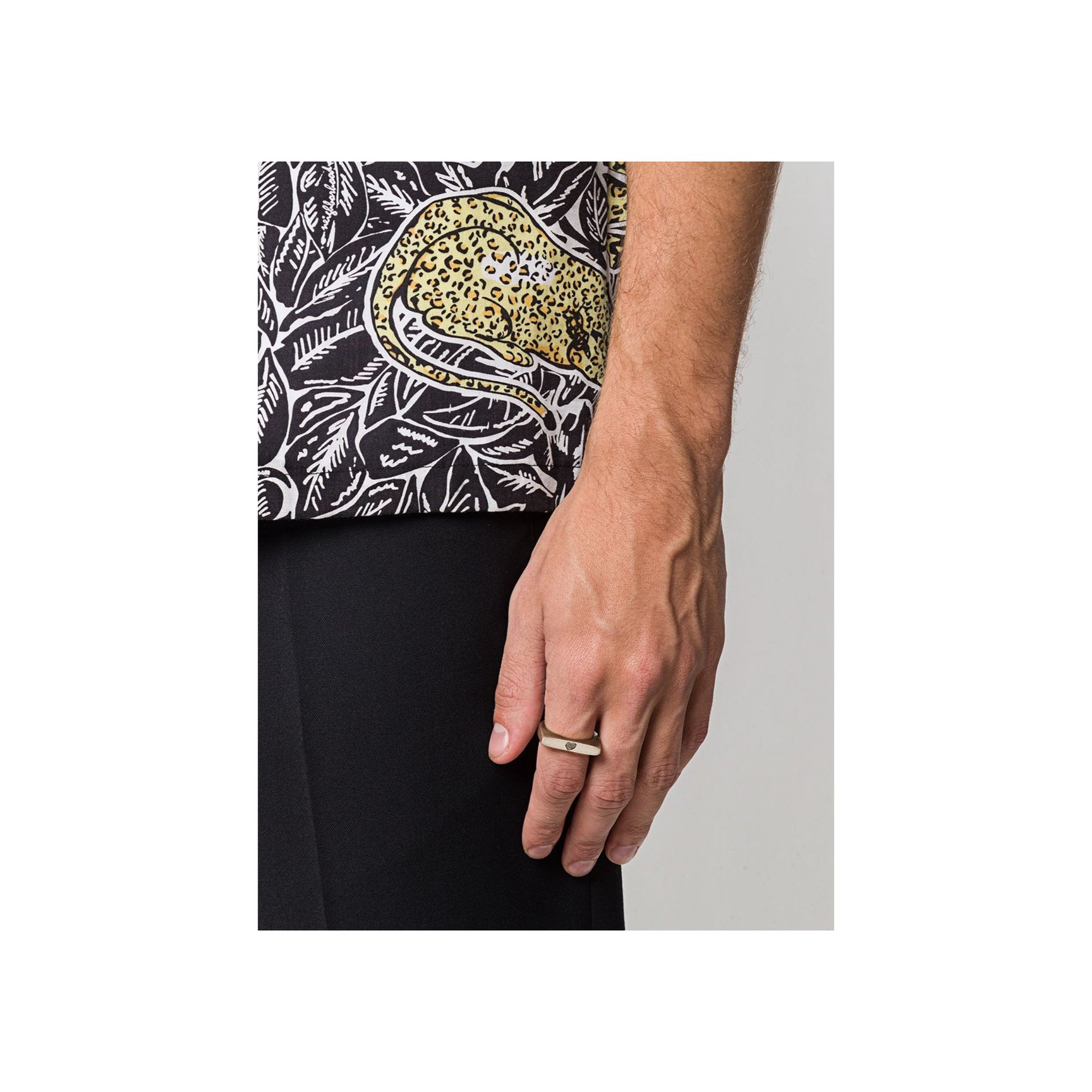 少しキッチュなモチーフを、絶妙なセンスでモダンに仕上げる「アラン クロチェッティ(Alan Crocetti)」。造形美が特徴のロンドン発のジュエリーブランドです。こちらはブランドモチーフのサソリとバラのイラストが刻まれたデザイン。横から見るとアワーグラスシェイプになっている点にも、クラフトマンシップが感じられます。