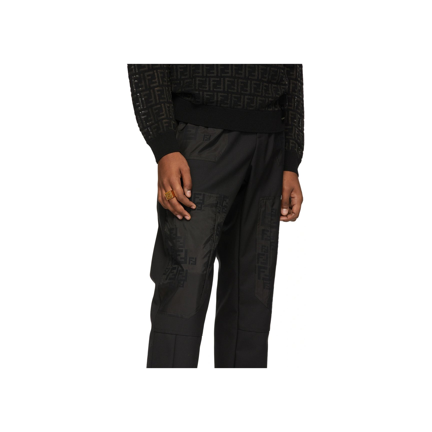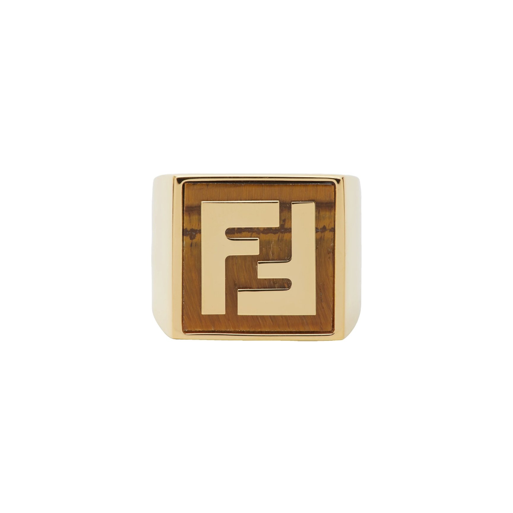 ブラウンのアゲート(メノウ)素材に「フェンディ(FENDI)」の「F」モチーフが配されたスクエアタイプのリング。アール・デコの工芸品のようにも感じられるデザインです。