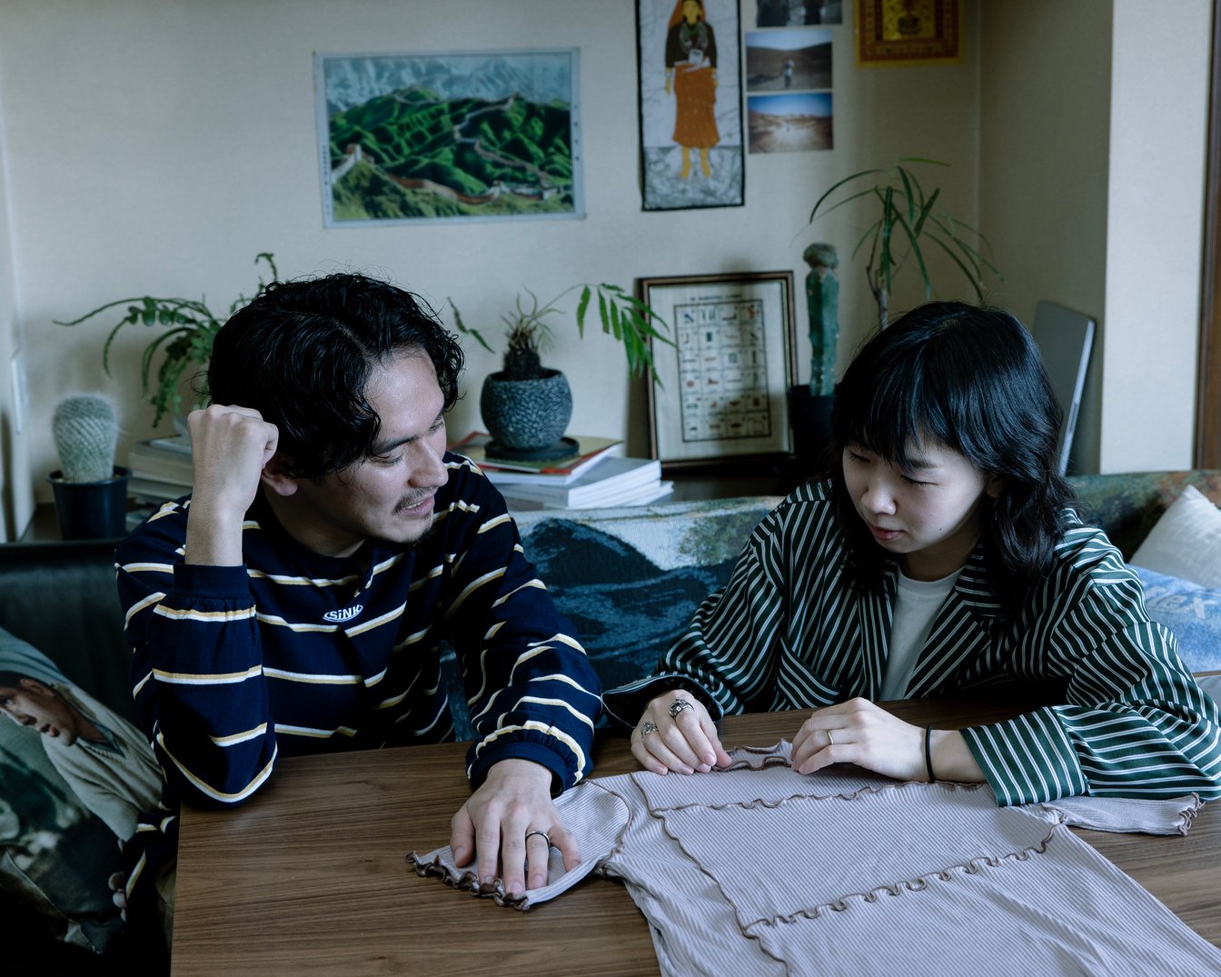 「コトハヨコザワ(kotohayokozawa)」の横澤琴葉(日高琴葉)と「ヒダカ(HIDAKA)」を手掛ける日高俊のデザイナー夫婦。結婚4年目を迎え、第一子も誕生するなど生活を共にする2人は、今回初の共同作業として仕事でもパートナーになった。