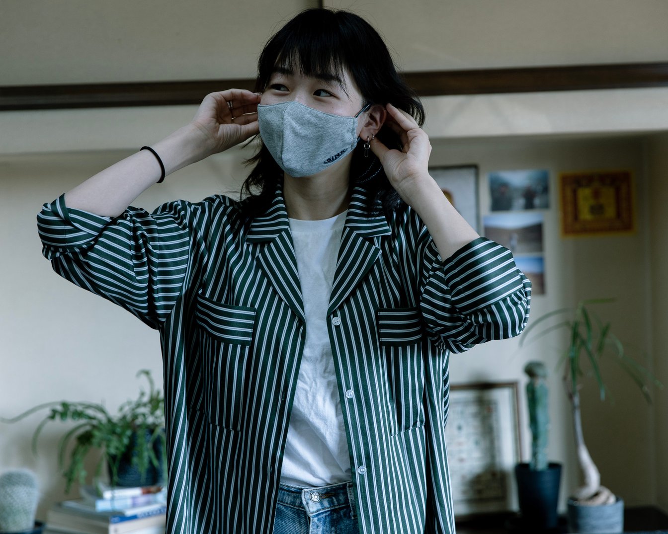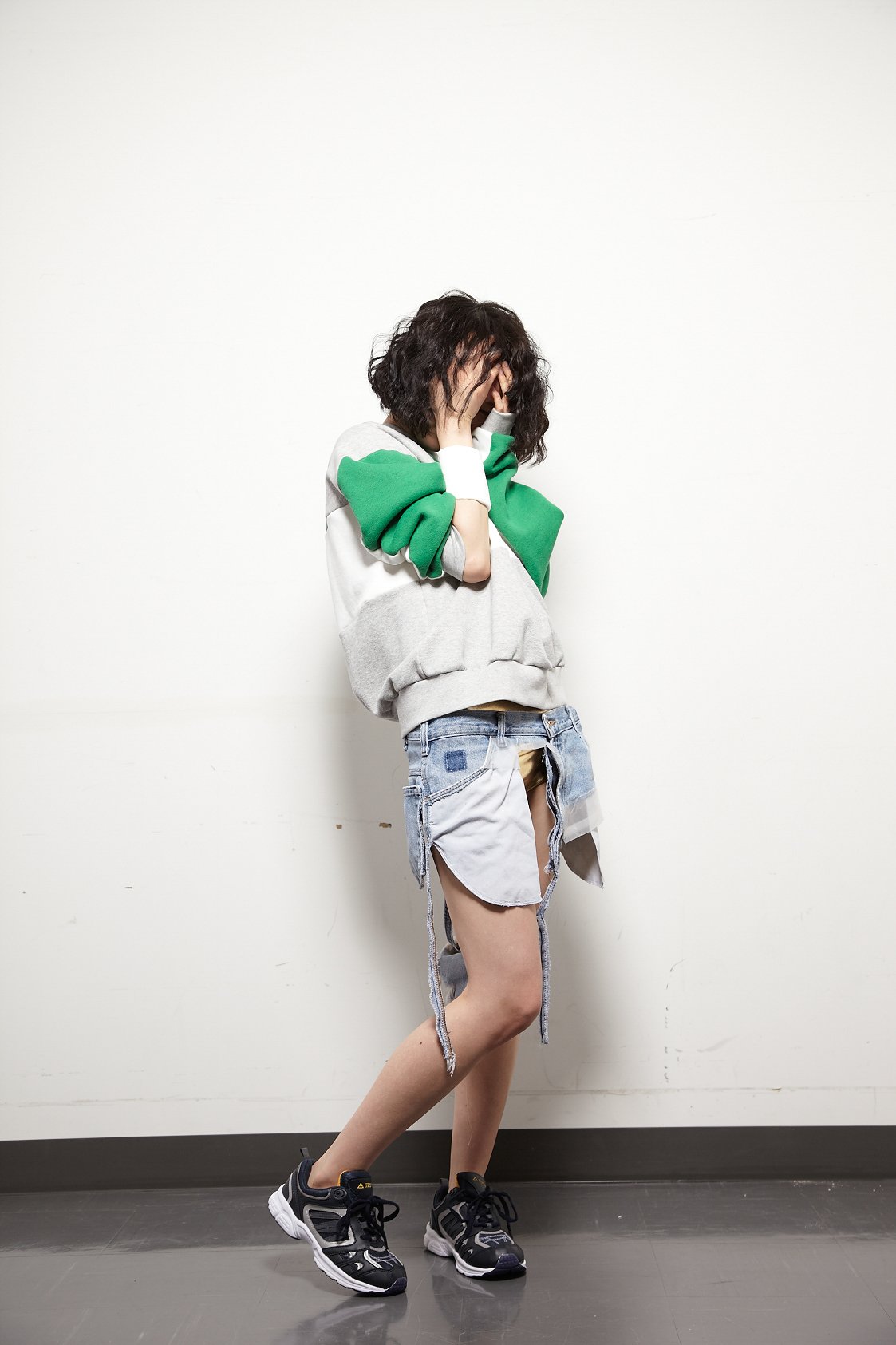 横澤:私は家でよくデニムを穿くんですけど、やっぱり家にいる時ってパジャマやスウェットとか楽なものになるじゃないですか。家と近所の行き来しかできない期間が2ヶ月あって、その中で色々な私服を毎日撮ったりしてみたんですけど、何も考えずにスタイリングした服装がコンビニの鏡に写ったときに「意外と良いかも」と思えたんですよね。部屋着でエコバッグを持っている姿がカッコいいなって。みんな普段家ではそういう服装なのに、会う時はよそ行きの格好だからすごく勿体無いなと思ったんです。
