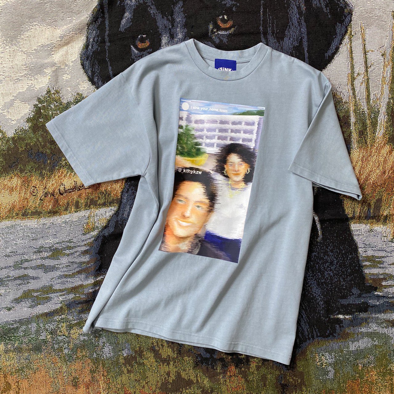 横澤:あとTシャツのグラフィックはストーリーズに投稿された動画をイメージしていて。デニムはスマホの跡がついたようなデザインを採用しています。多分こういうスマホの跡がついたデニムが古着屋に並ぶようになるのって5年後くらいだと思うんですけど、それを今やってみたというか。