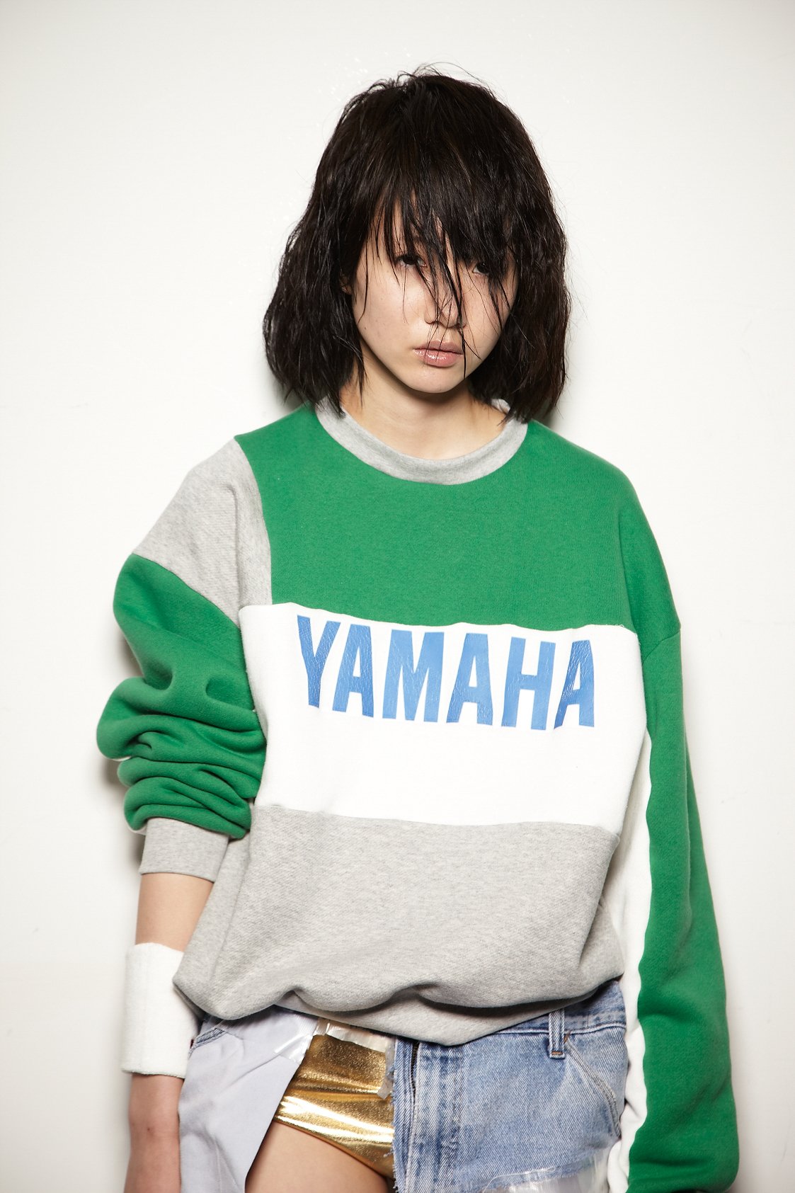 日高:あとやっぱり、僕的にブランド軸になるのは彼女がエスモード時代に作った卒業コレクション。ヤマハ(YAMAHA)のスウェットとデニムというスタイルですが、これが彼女のパーソナルな部分なんですよ。でも今コトハヨコザワだとできないので、この雰囲気をシンクで出せればと考えましたね。