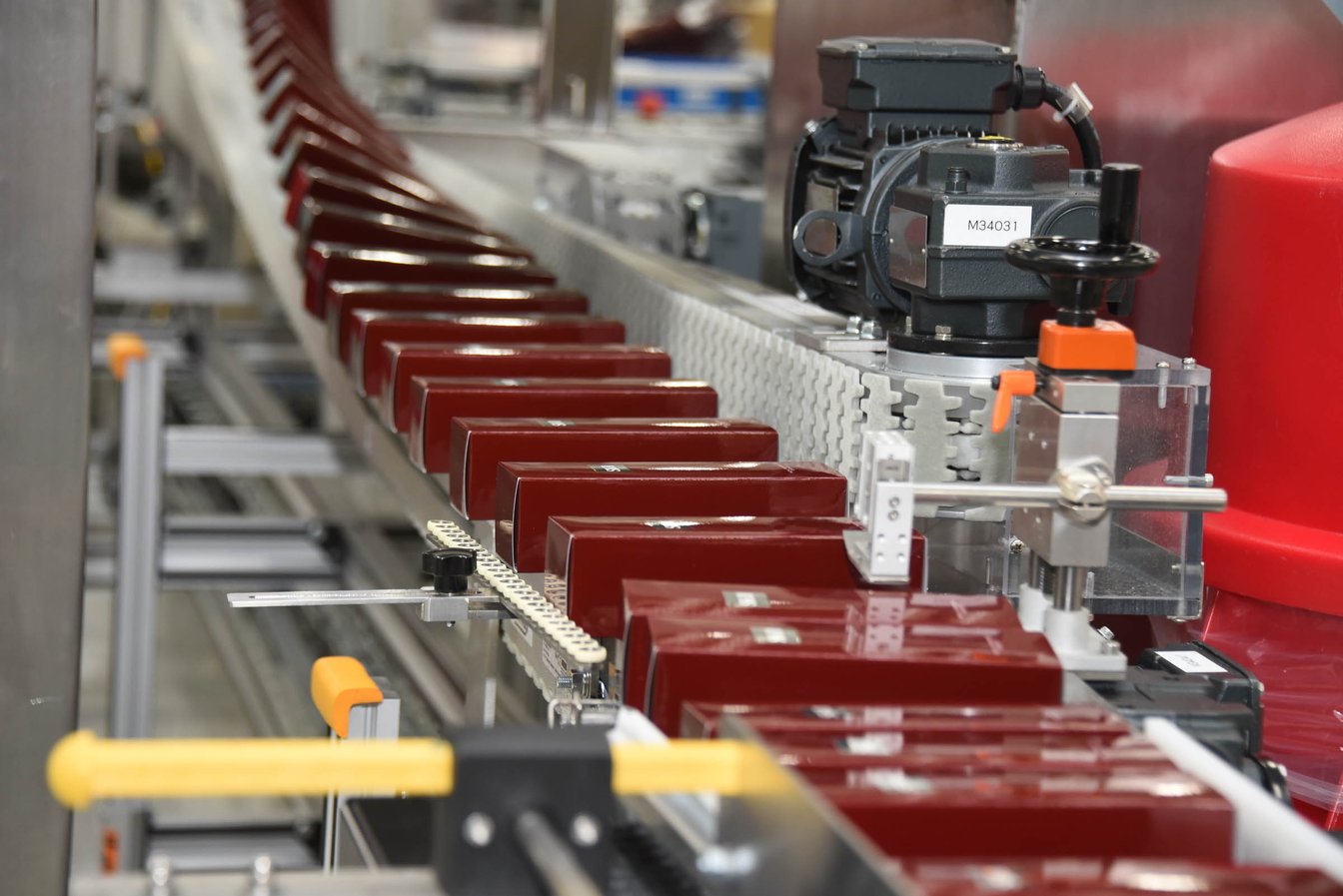 環境にやさしいサプライチェーンを目指し、包装ラインや製造システムを刷新。さらに倉庫の自動化も。安全・衛生管理は厳格に徹底していて、服の上から防護服を着用するのはもちろん、髪の毛を覆うネットを被った上から帽子を着用。全身をいわゆるコロコロ(粘着カーペットクリーナー)で小さなゴミを取り除いていざ、製造現場に。自動で進む、生産ラインを見学しました。
