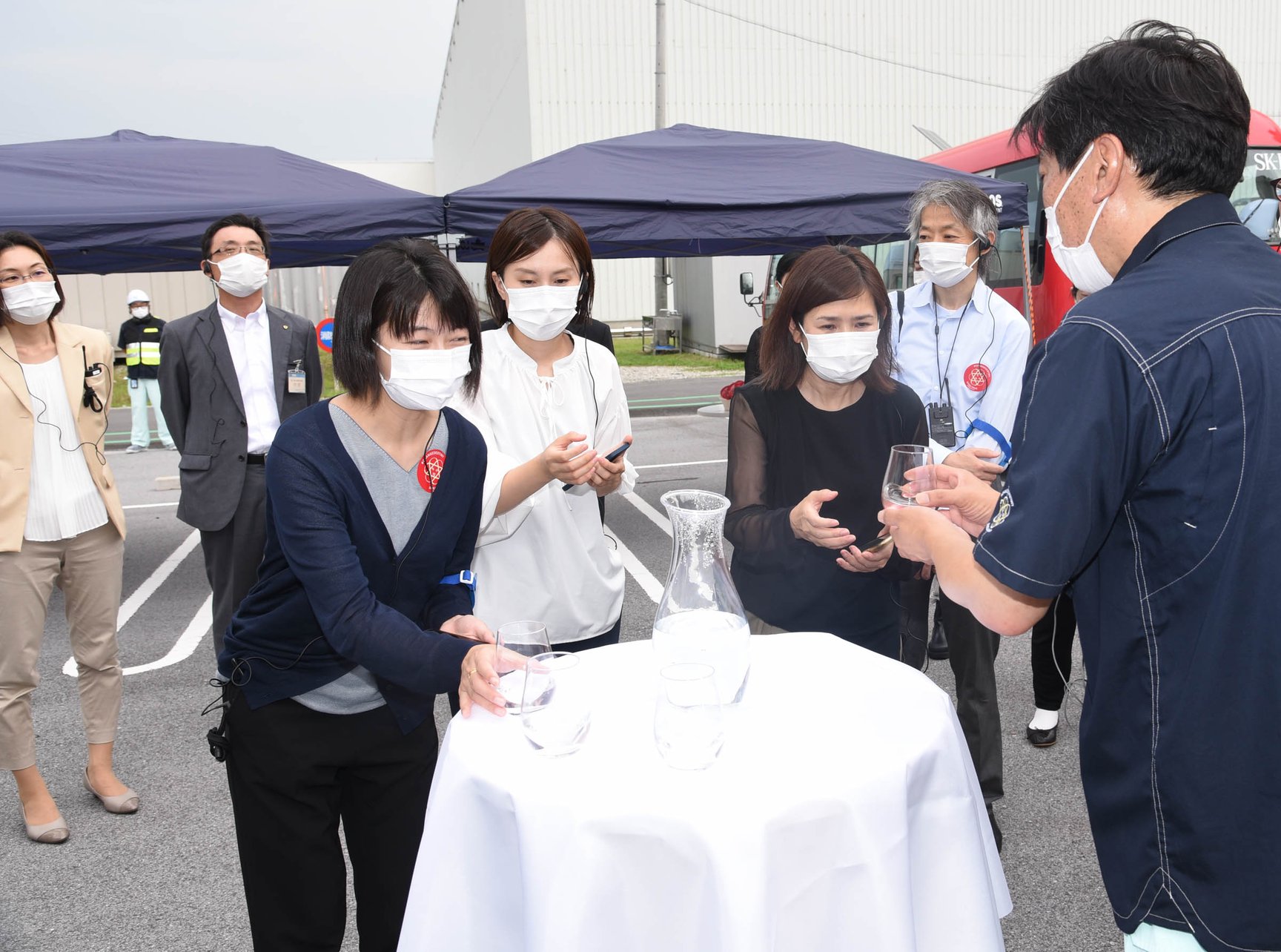 サステナビリティのこだわりは、排水循環テクノロジーを用い、製造工程で出る排水の11%を循環させていること。循環させた水はP&Gで初めて、飲用可能な水質になっています。その水を飲ませてもらいましたが、全くの無味無臭。美味しくいただきました。将来的には産業排水の100%を循環させたい、とのことで日々開発が進められているようです。この技術の導入で、滋賀工場の生産量あたりの水使用量は2019年6月以降、10%以上向上したとか。P&G全体で2040年までにネットゼロを目指していて、この排水循環テクノロジーはその一環の取り組みです。
