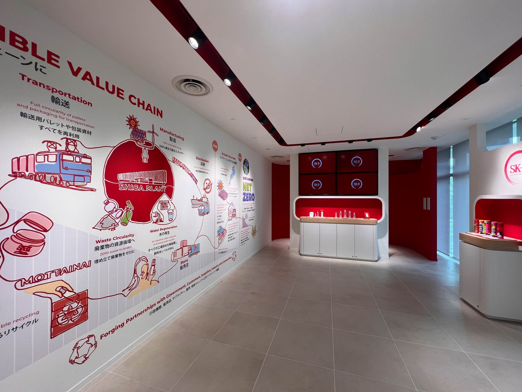 SK-IIと言えば、「ピテラ™️」。管理棟1階に新設した、「ピテラ™️ エクスペリエンス センター」は、ピテラ™️の歴史やその魅力が分かる“ミュージアム”的なエリアです。