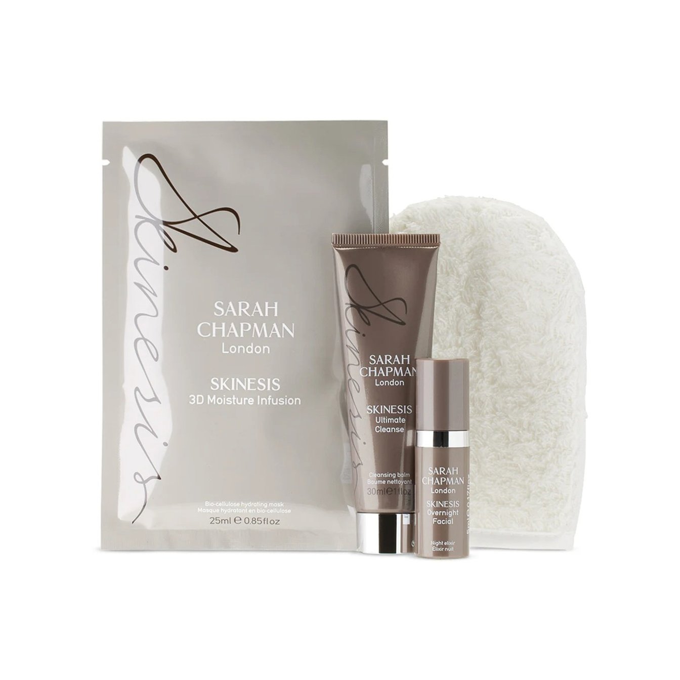 フェイシャリストとして絶大な支持を得る「サラ・チャップマン(Sarah Chapman)」のプロダクトからは、スキンケアの基本でもある洗浄に特化したミニセットをチョイス。古い角質や汚れを落とすクレンジングとミットが心地よく、セラムやフェイスマスクの美容成分をしっかりと肌が吸い込む感覚を満喫することができます。