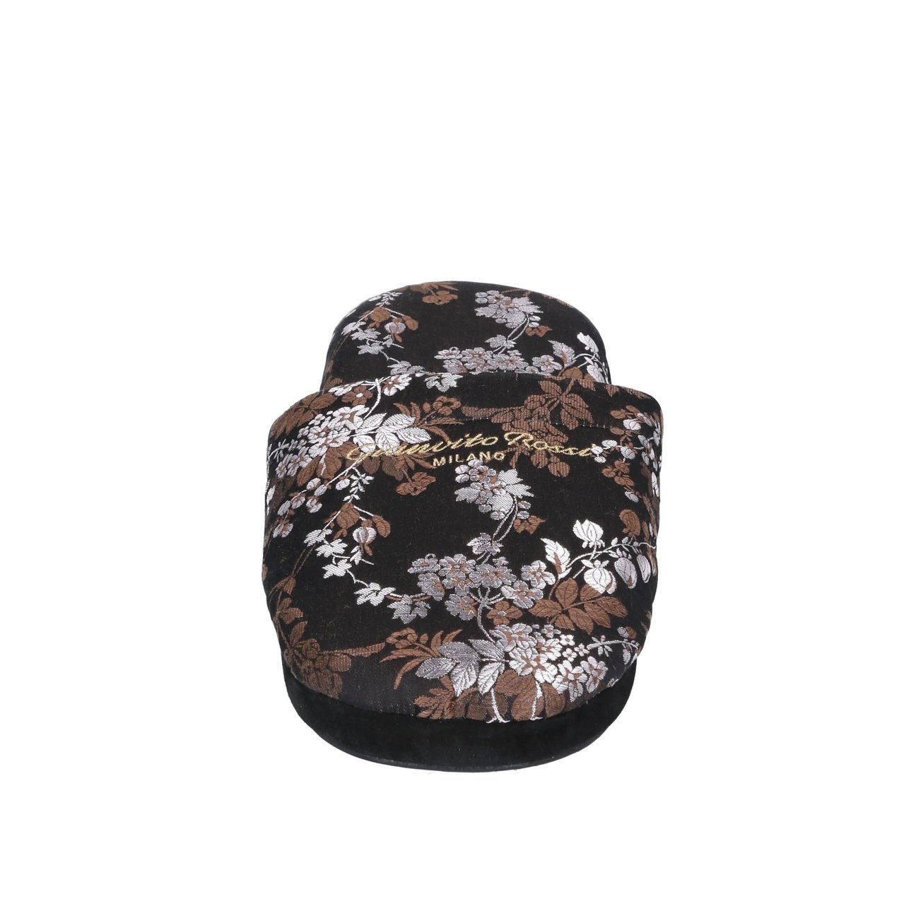 「ジャンヴィト ロッシ(Gianvito Rossi)」のスリッパは、どこかオリエンタルなムード。ブラック地にシルバー&ブラウンで植物柄が刺しゅうされたデザインで大人っぽくラグジュアリー感が漂います。