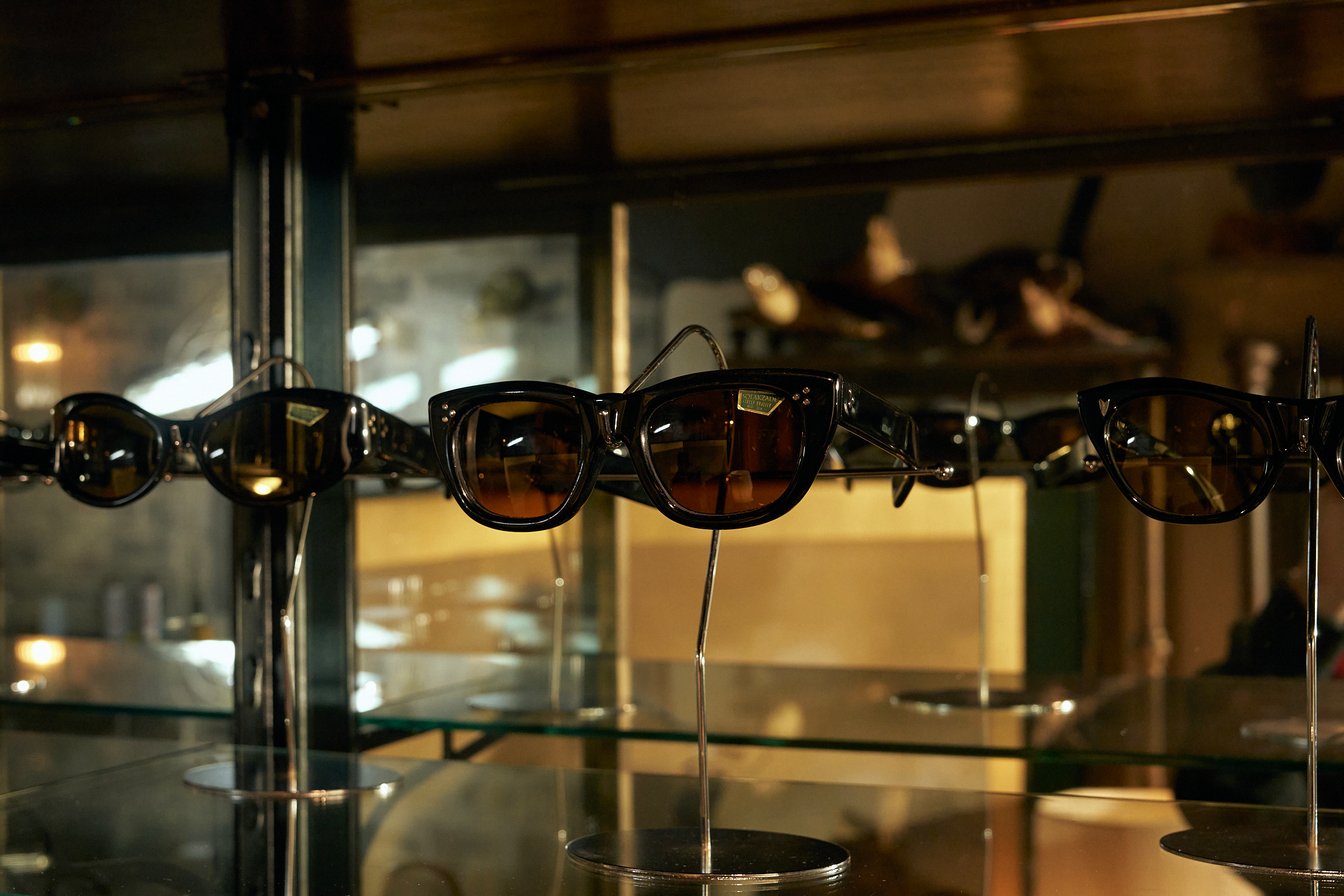 龍允:アイウェアはジュエリーや時計と違って、産地に行ってデッドストックを見つけることができます。主要なところだと、日本とイタリアとイギリスとフランスとドイツ。アメリカは昔は名産地でしたが、最近はあまりありませんね。歴史を把握しているからこそ、デッドストックが出てきそうな場所や時期はある程度予想できます。そして、実際に足を運んでみると、本当に1000本、いや1万本ものデッドストックが出てきたり。仕入れには基本的に僕たち2人で行くことが多いですが、最近は店舗の若いメンバーに行ってもらうことも増えてきました。最初は古い個人店から在庫を譲ってもらうところから始まりましたが、現在は東京でヴィンテージやデッドストックを取り扱う店としてはソラックザーデが代表的な存在として認知されているので、世界中のアイウェアメーカーなどからデッドストックが大量に見つかった際は、必ず僕らに連絡がきます。ヨーロッパではそのボリュームの在庫を買い取れる店はありません。そして、連絡をもらった場所を回っているだけで1年が終わるほどです。