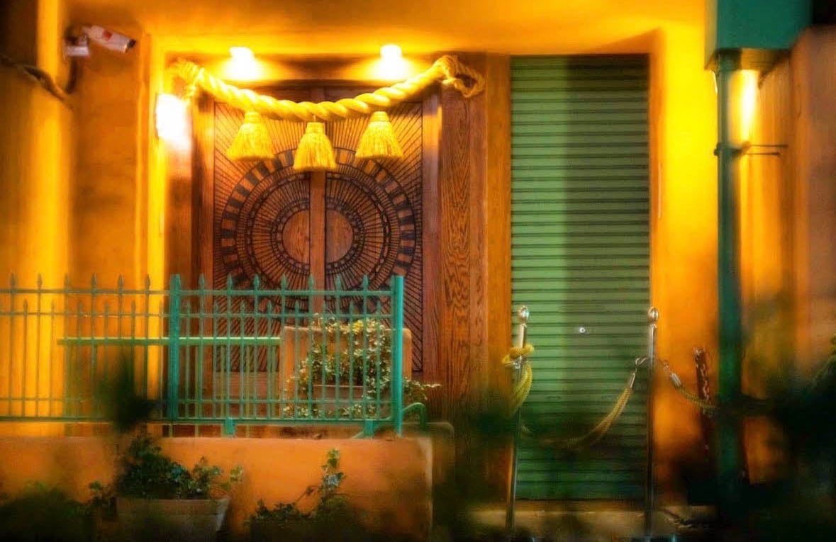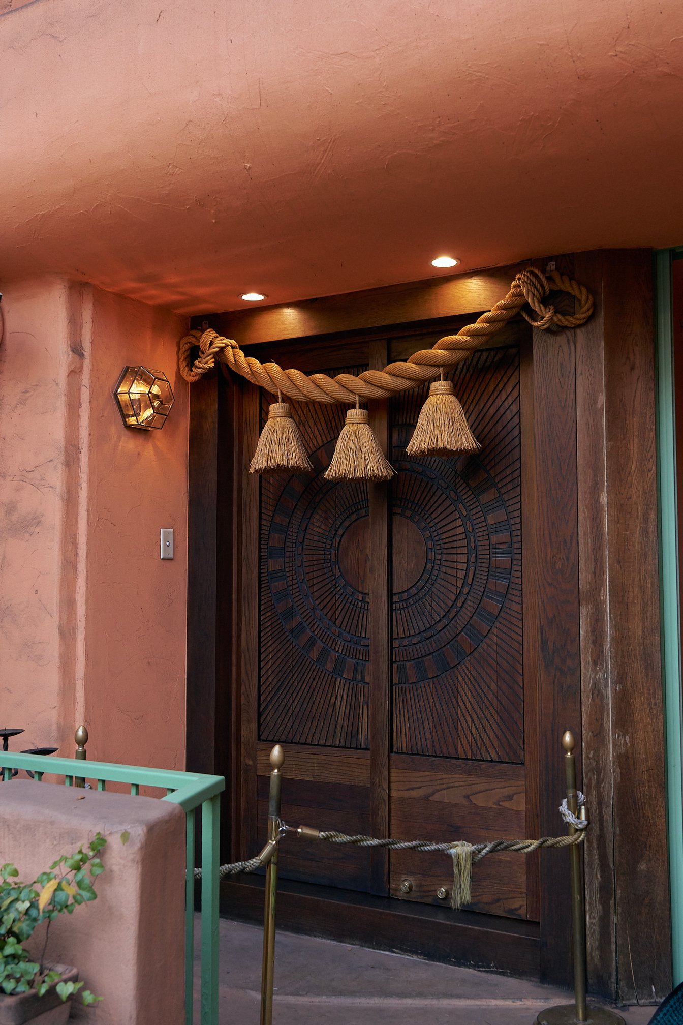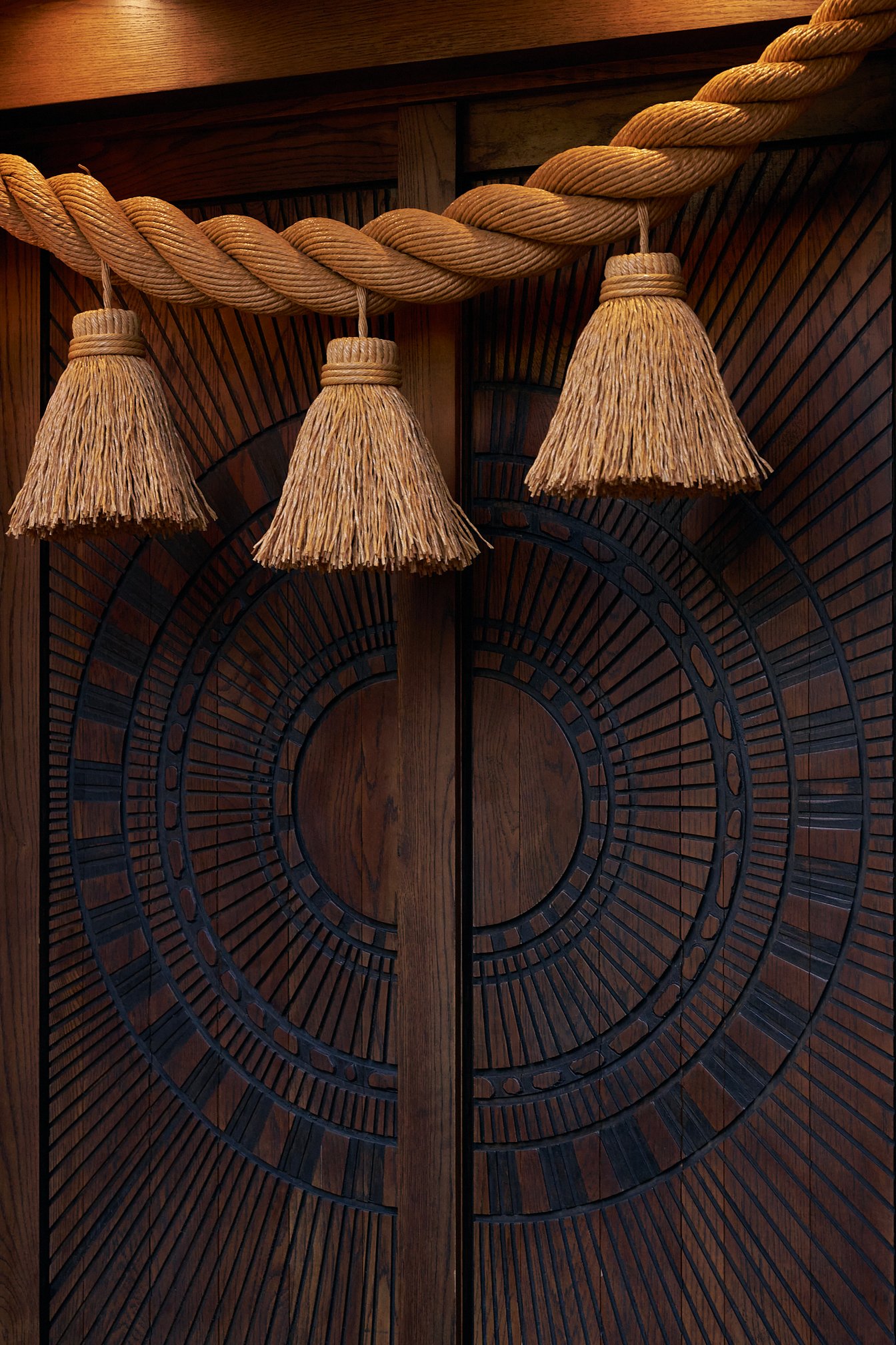 SOLAKZADE®︎原宿の店舗1階の木の玄関は、ナラの無垢材で、家具職人のヘルプのもと、岡本兄弟によって彫られたもの